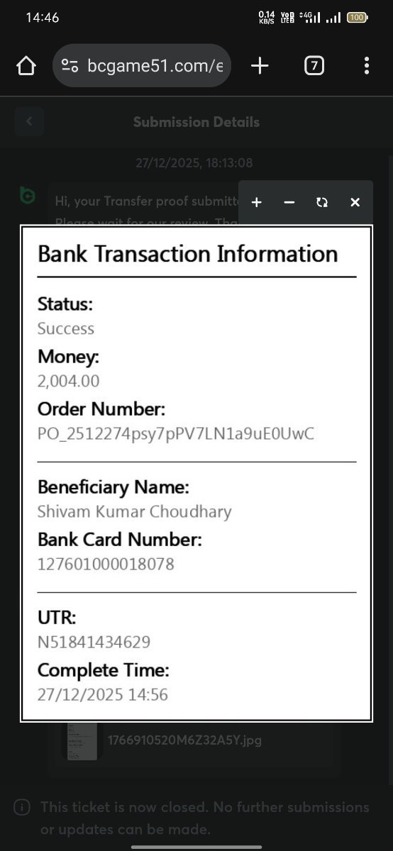 Hi everyone, I am writing this to report a technical issue regarding the "Betting Limit" (Responsible Gambling tools) on BC.Game and to seek clarification on a refund. I explicitly set a daily wagering limit of €25 on my account to manage my gameplay responsibly. After wagering about €23, I managed to win €45. However, to my surprise, the system allowed me to continue betting and even place wagers exceeding €50 in total. Essentially, the system failed to enforce the active limit I had set for my own protection. Because the technical safeguard did not work as intended, I ended up losing funds that should have been locked by the limit. I believe that if a player takes the step to set responsible gambling limits, the platform must ensure they are technically functional. Since this appears to be a system failure: Has anyone else experienced limits not triggering correctly? Is it possible to get a refund for the amount wagered beyond the set limit? I have screenshots of my limit settings and the betting history to prove that the threshold was bypassed. I would appreciate it if a staff member could look into this. "Thank you for the explanation regarding the 15-minute activation period. However, this does not apply to my case. The wagering limit in question was activated several days ago. It was not a newly set limit. Therefore, the 'activation delay' is irrelevant. The facts remain: An active wagering limit of €25 was set days in advance. The system failed to stop my wagering once the limit was reached. I was able to wager significantly more than my limit allowed, resulting in a loss that should have been prevented by your system. Since this is a clear malfunction of your Responsible Gambling tools, your 'strict protocols' and 'monitoring' obviously failed in this instance. As a licensed operator, you have a duty of care to ensure that these tools work. I request a full investigation into why a long-standing limit was ignored by your software and ask for a refund of the wagers placed in excess of my €25 limit. I am prepared to escalate this matter to the licensing authority and relevant gambling forums if this technical error is not addressed fairly." User ID:3043121