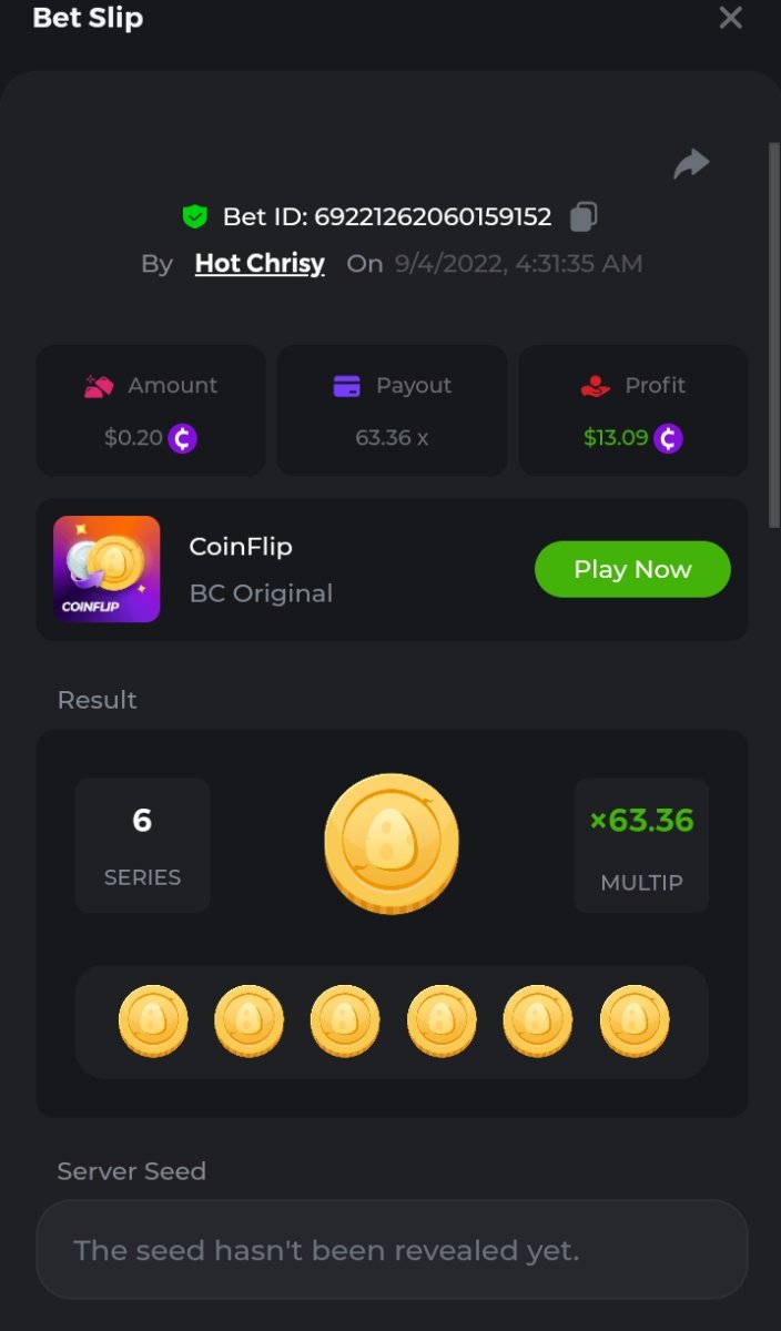 Bounty: https://bc.game/#/sd/10UDBYYTH55TLF I put in $.15bcd not .$14 guess it's market fluctuations. https://bc.game/#/sd/10UDBKHRACQMTV