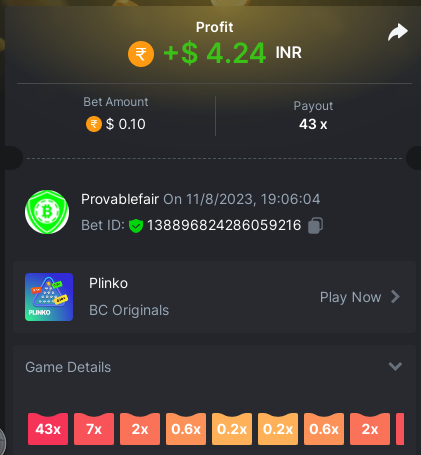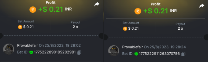 bet 0.21$ - 50x - Hash Dice - https://bc.game/#/sd/11QN6R5L1JDVQJ - Bet ID: 124823577961695244 bet 0.21$ - 50x - Limbo - https://bc.game/#/sd/11QN8527NJ49ZV - Bet ID: 82729660290963