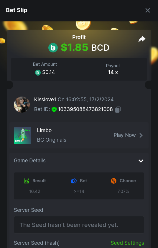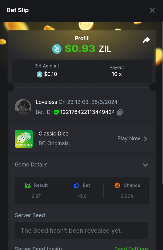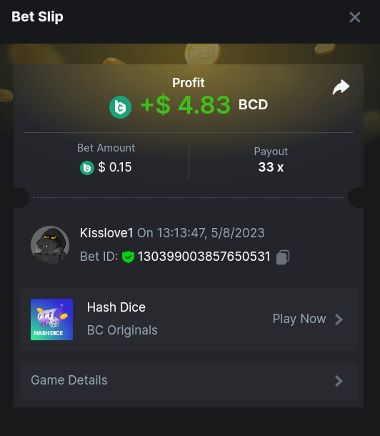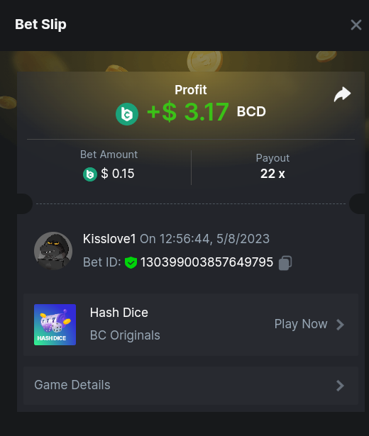 1. Easy 1 Clasicdice https://bcgame.im/#/sd/11VLF907DFX3X7 2. https://bcgame.im/#/sd/11VX8NCX7RXVGN 3. Enable 2FA for your BC.Game account + Verify E-Mail & Phone Number (If 2FA already activated, keep it activated): DONE 4. 2387191660871295143