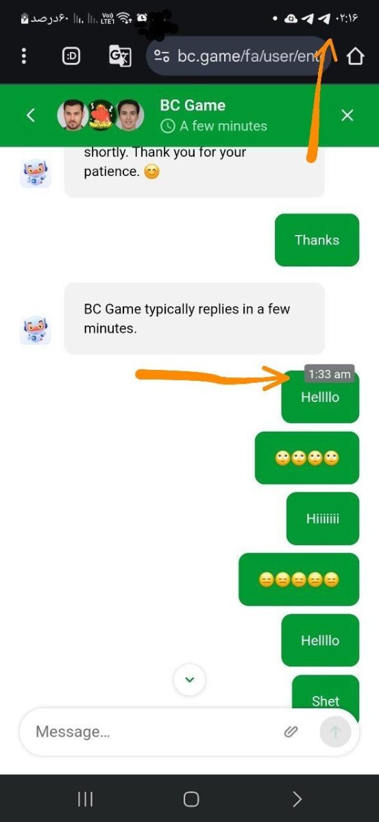 2. Hello, I have been your VIP member for several months, and you can check my activity. I deposited a lot of money for betting, and I encountered the strangest thing in the years I have been playing, and that is that it has been two days since I contacted online support. I will send you a message, but please do not send a message from them. Please follow up. It is very strange to me that you are not following up because before this happened I thought you were the best site in the world, but I was totally shocked and if it is not followed up tonight, I will leave the site altogether because I am both sad and nervous. I have been waiting since last night.