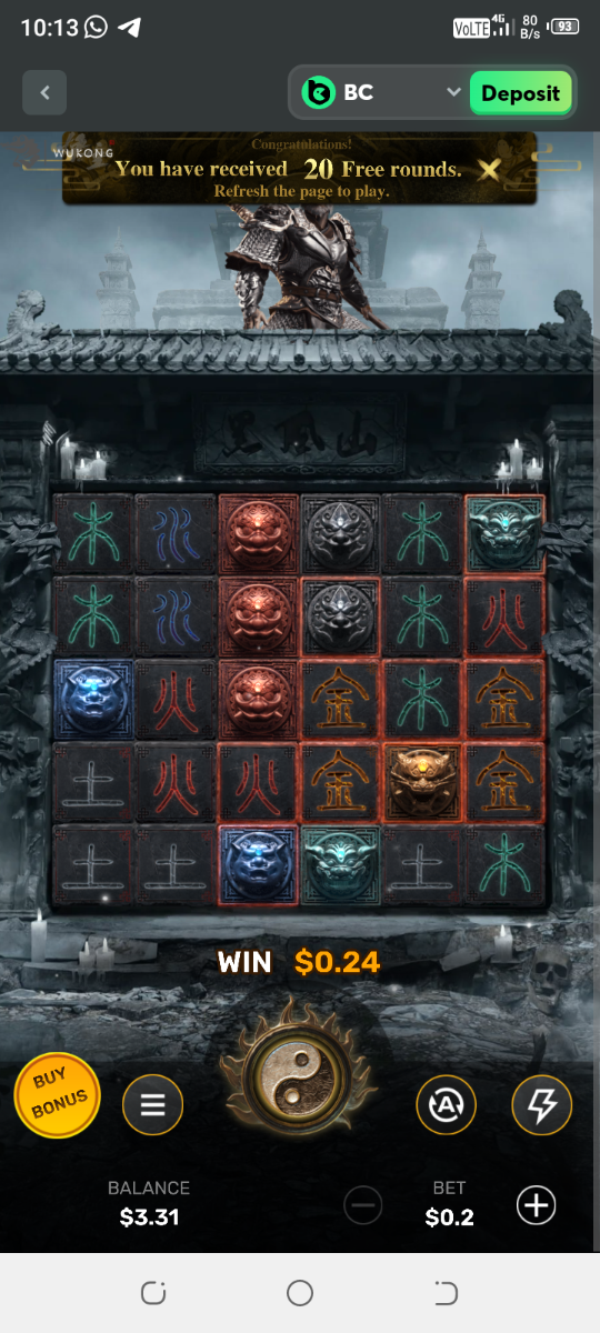 I'll say Wukong in Medium difficulty. Please make it playable for Poor/bad connection users untill the Bonus end. We will like a Higher RTP and Lower House Edges, and I love to see some other Events like the Wukong Ranking promotion last time. My rating 5 out of 10. Thankyou for the new Promotion CoCo, I got 20 FS. Looking forward to more promotion on Wukong Slot. UID - 411745