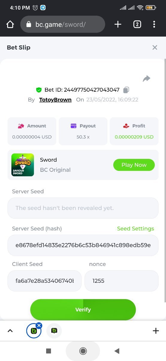 Easy 1. IG username: jy0101012 2.IG post link: https://www.instagram.com/p/CcQ15iihtEh/ IG username: jy0101012 3.Twitter Handle: jy0101012 4.Twitter Link post: https://twitter.com/BCGameOfficial/status/1513818244859457537?s=20&t=k-Gx9ZNEpjCFZIQLuoWYbQ Twitter Handle: jy0101012 5.FB profile link: https://m.facebook.com/john.yan.16121?lst=100042354130320%3A100042354130320%3A1649794589 6. 7. Sports Bet id: 2125322774074499456 8. 9. 10. Enable 2FA Medium 1. 2. 3. 4. 5. Sports Bet id: 2126036089507557603 Hard 1.Wheel 49.5 https://bc.game/sd/?sd=10ILDC7GCTCAOJ