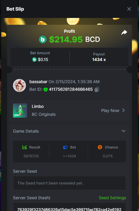 Hi @BCGame_Maxim I assume if it hit crash 999x it is still valid for that point and that I dont have to do hashdice instead? It took allot of coins to chase and hit that, it wouldnt be fair if that would be taken away. I understand there are issues now, but its not fair to those who already hit it before the issues. Tbh its a no go to change rules while the event is already running. -