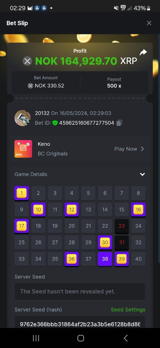 20132 replied to BCGame_Maxim's topic in VIP Challenges