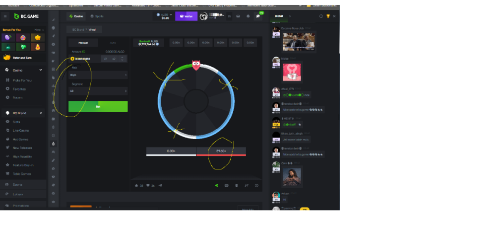 1) The Wheel game shows the same 10x on low image for the wheel, no matter which multiply setting you place it on, so when spinning on hard for 20x you cannot see when it will land.