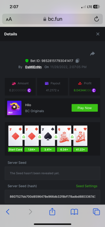4. Limbo challenge ***$0.14 bet with a 14x - https://bc.game/#/sd/11SOJ7WU1USC5V