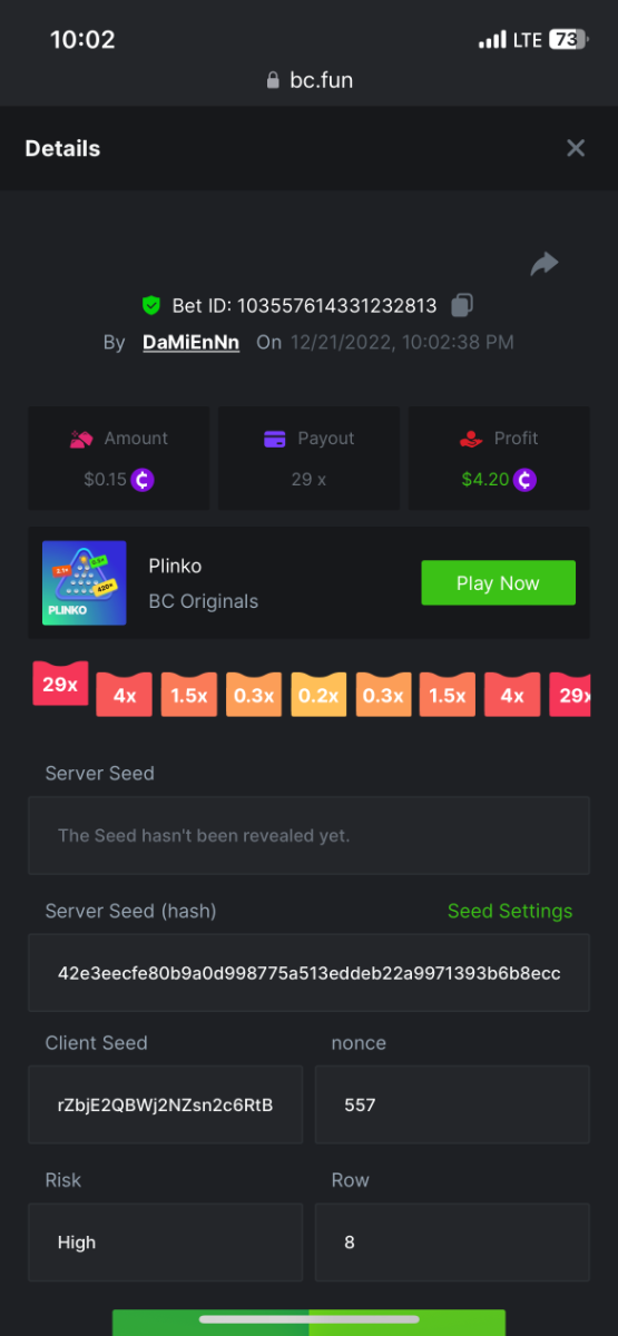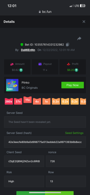 16. Plinko challenge 29x https://bc.fun/#/sd/10ZR9FELV8AJ2R $0.15 bet 11x https://bc.fun/#/sd/10ZRGRWB2YZSWJ $0.62 bet 88x https://bc.fun/#/sd/10ZRHQCNU4W4K3 $2.48 bet