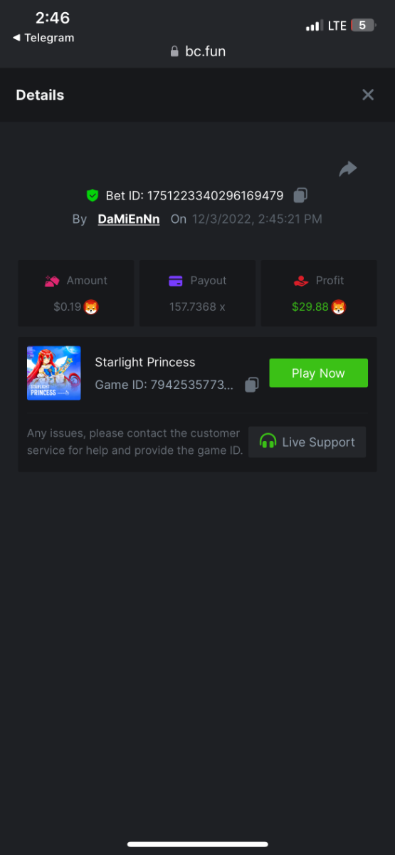 20. Pragmatic play Starlight princess- https://bc.fun/#/sd/10YHWPMO6U4ZKJ 157.7368x $0.20 bet Sword of ares- https://bc.fun/#/sd/10YI8A1HPPAFIR 25.1794x $0.40 bet 5 Lions megaways- https://bc.fun/#/sd/10YIPUS6JZJUVN 36.93x $0.50 bet