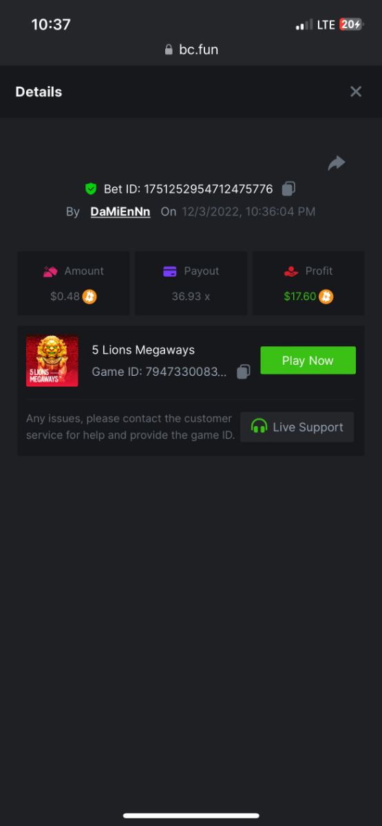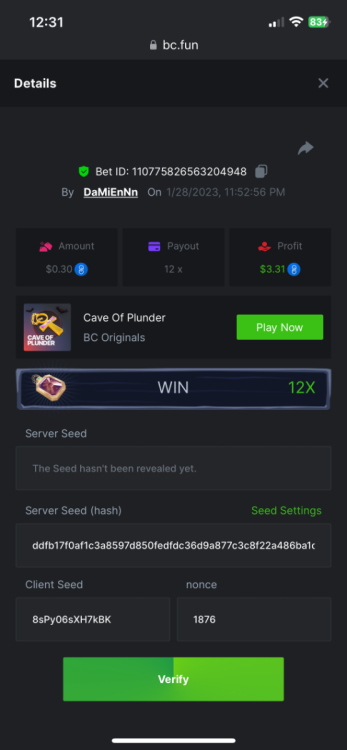 14. https://bc.fun/#/sd/112DOFUXGU3FGZ 12x $0.30 bet Don’t know if you can use this one because I lost bet link but I post it below anyways Cave Of Plunder-Win 110775826563204949 1/28/2023, 11:53:02 PM 33.60x $0.30 bet - $10.08 win