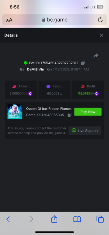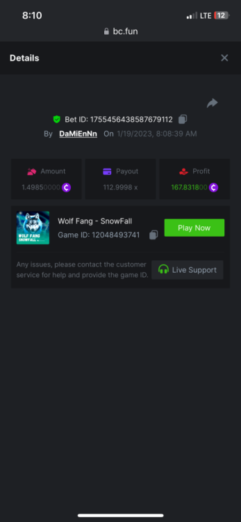 15. Spinomenal Wolf fang- https://bc.fun/#/sd/111POTFDBLSTUB 112.99x $1.50 bet Queen of ice- https://bc.game/#/sd/111PROVS7F6VWZ 60x $2.00 bet