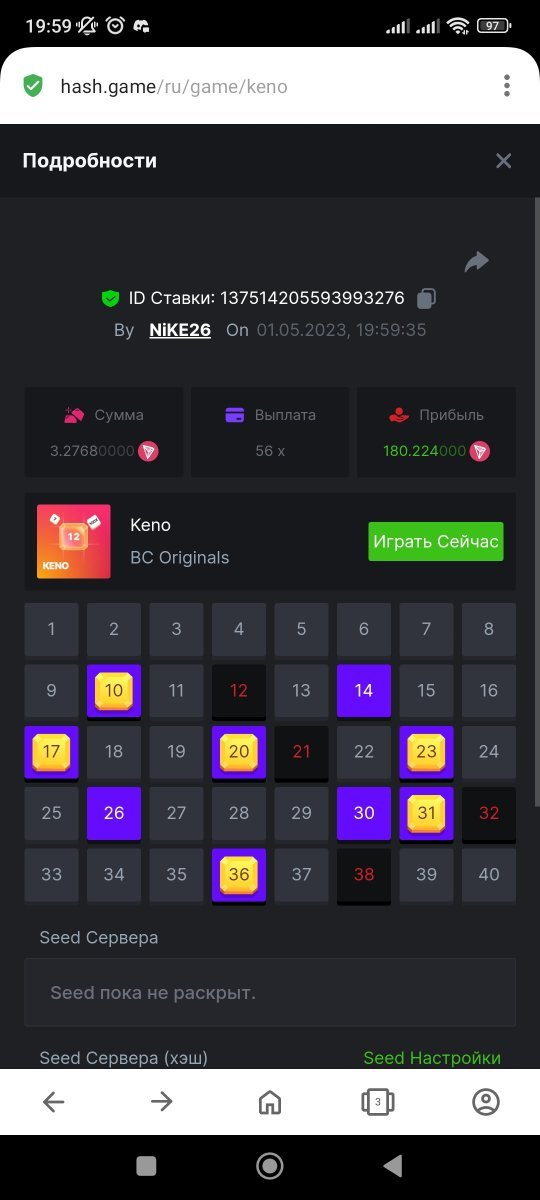 1. 5x https://hash.game/#/sd/11DKAWHXU6LONN 15x https://hash.game/#/sd/11DKB1T5PEQP03 25х https://hash.game/#/sd/11DKKAFG7GA4NN 33х https://hash.game/#/sd/11DKKDIIZ176S3 44х https://hash.game/#/sd/11DKKGMXNYERRN