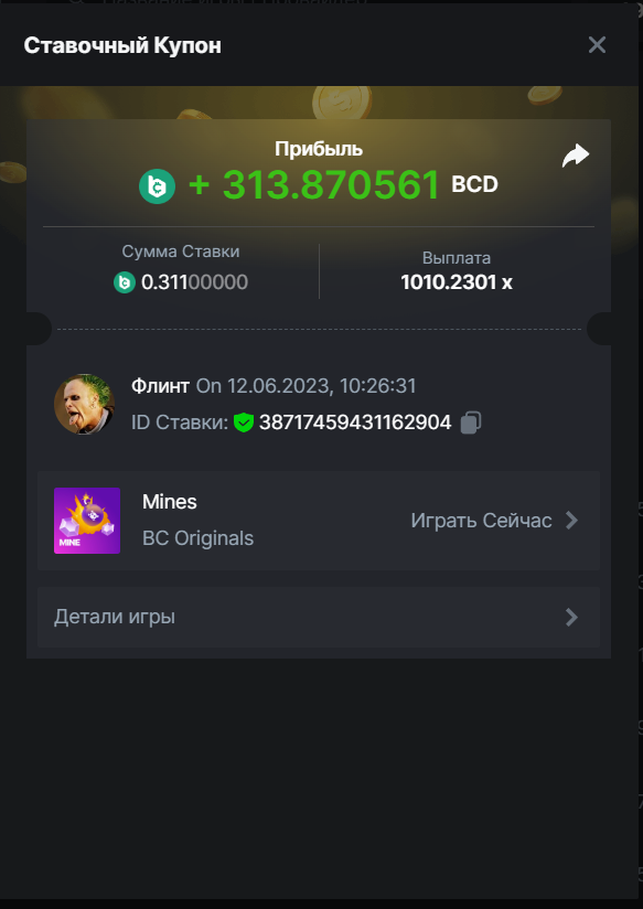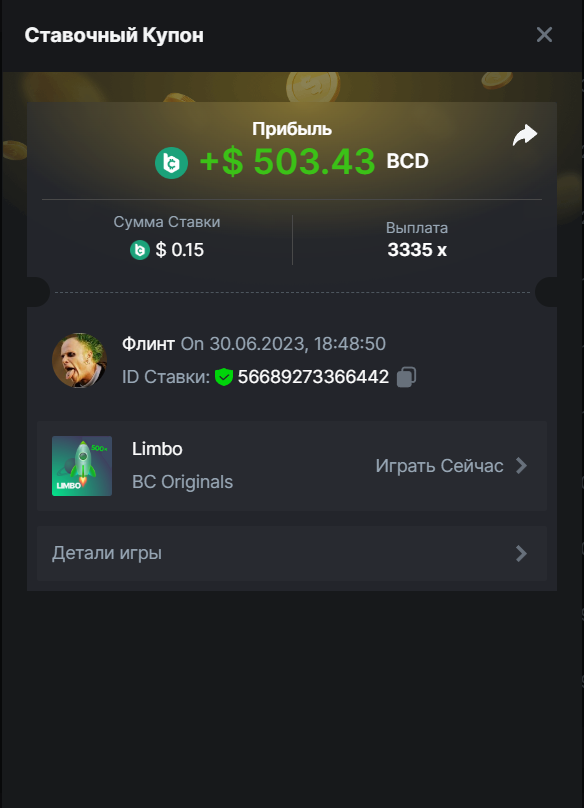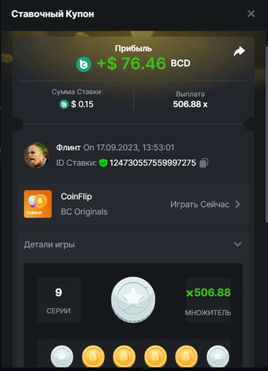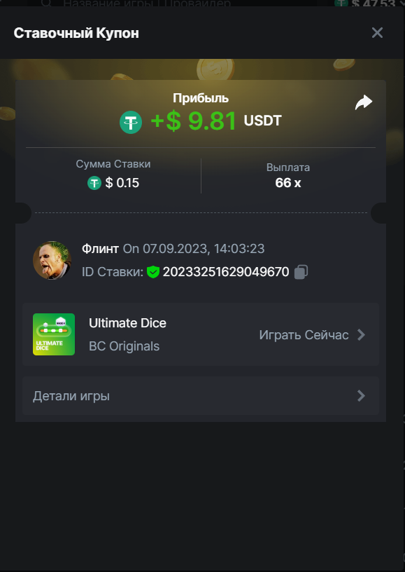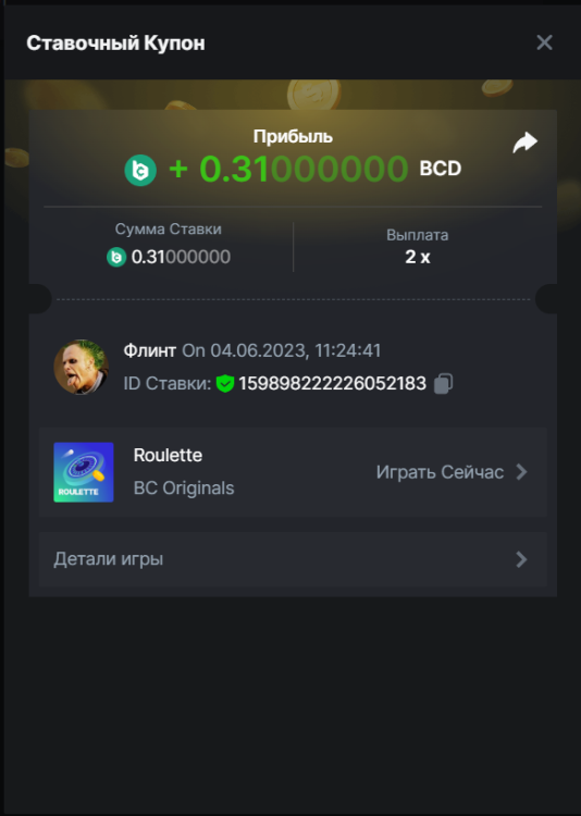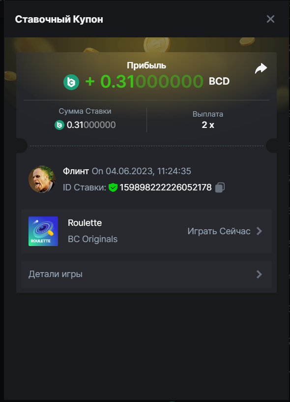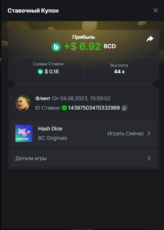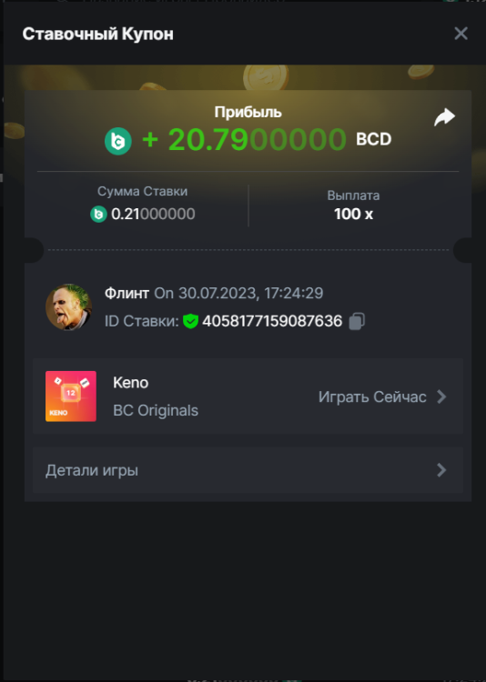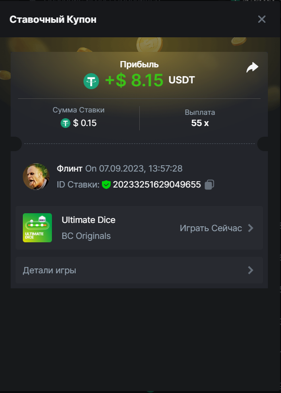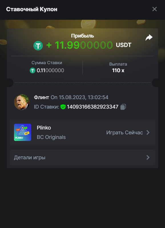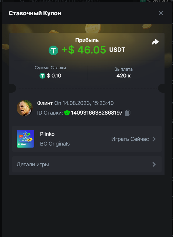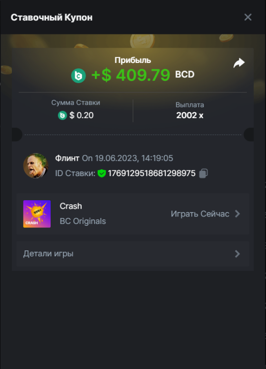 Флинт replied to BCGame_Maxim's topic in VIP Challenges