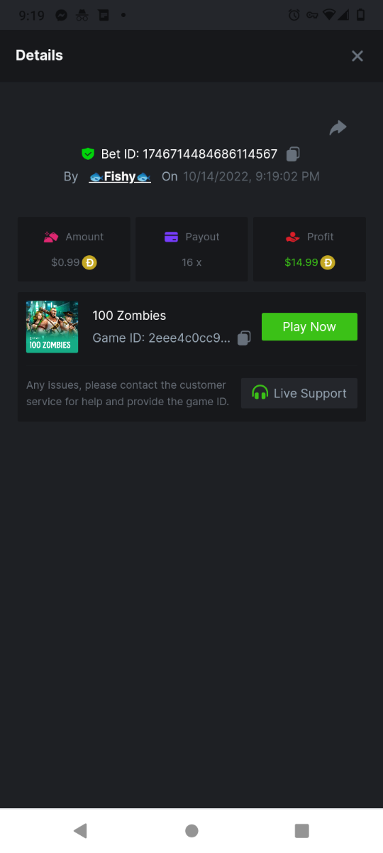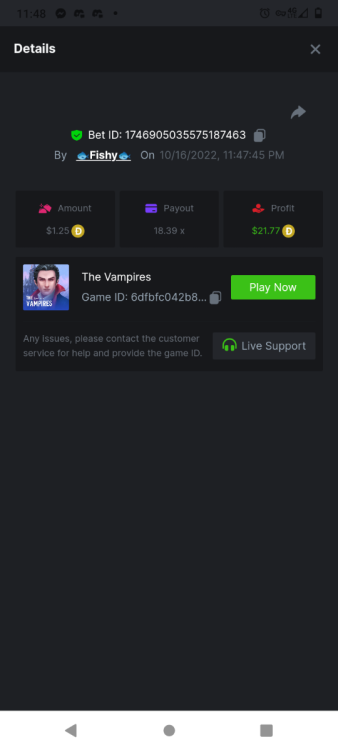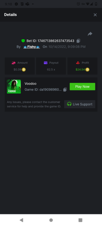 2. Voodoo: 62.5x Bet ID: 1746713862637473543 Hell Hot 100: 18.8x Bet ID: 1746712591668479104 100 zombies: 16x Bet ID: 1746714484686114567 Dia de Los muertos: 160x Bet ID: 1746903881181296391 Cyber Wolf: 100x BET iD: 1746904418254801024 The Vampires: 18.39x BET ID : 1746905035575187463 Hell Hit 20: 40x BET ID: 1746906362450280455