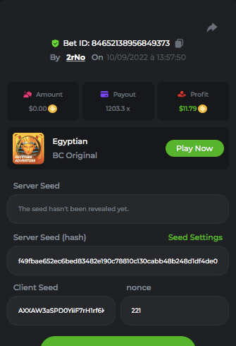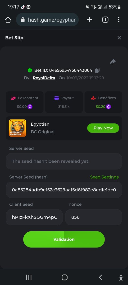 RoyalDelta Posted September 10, 2022 Share Posted September 10, 2022 https://hash.game/sd/?sd=10SPI7EHGZ7KER Merci à toi pour se superbe challenge Link to comment Share on other sites More sharing options...