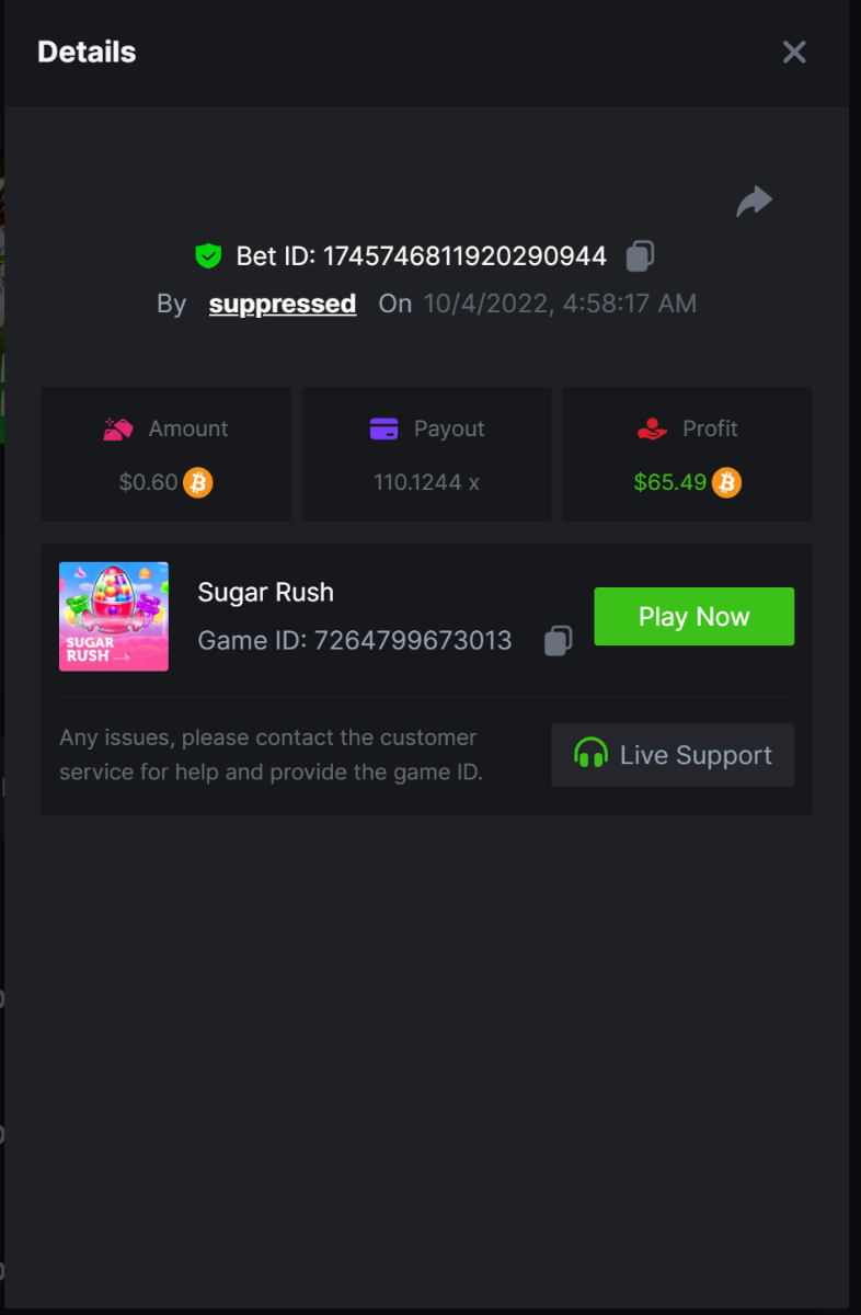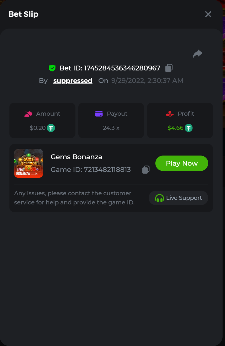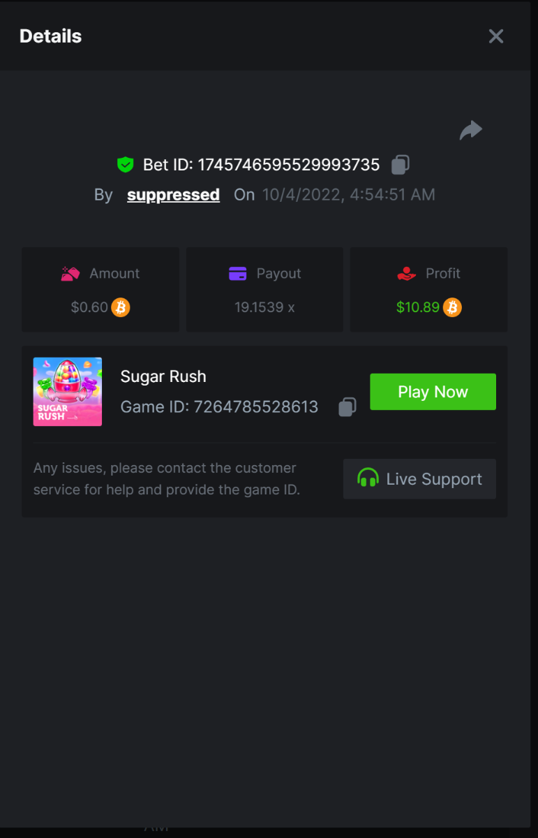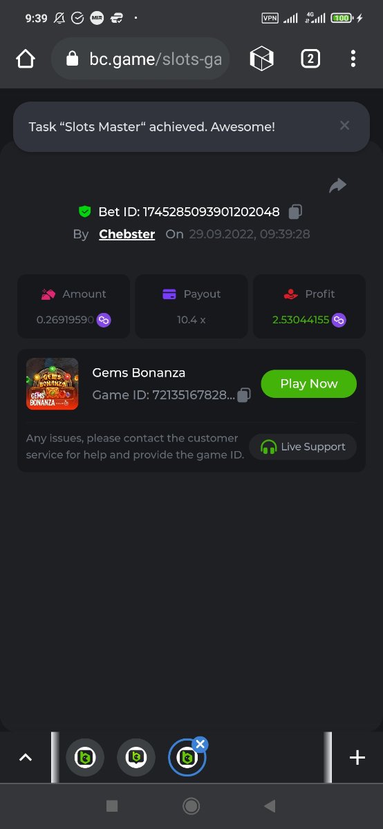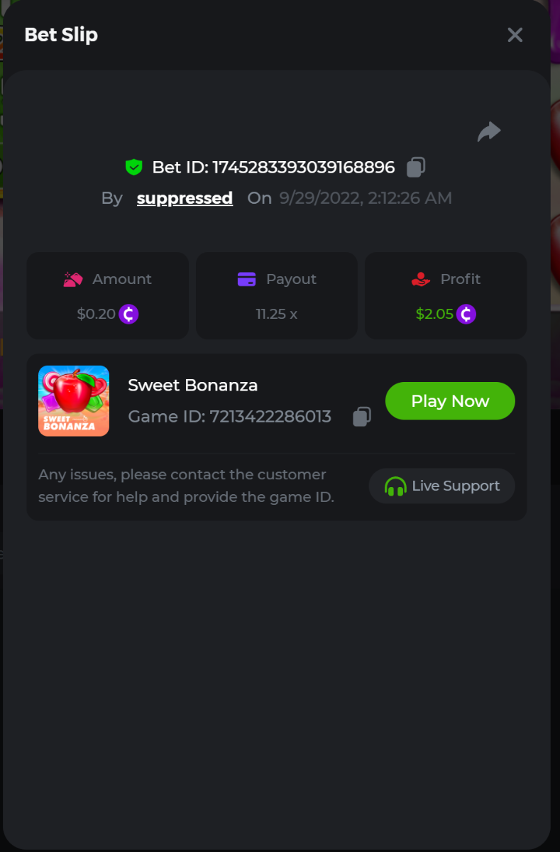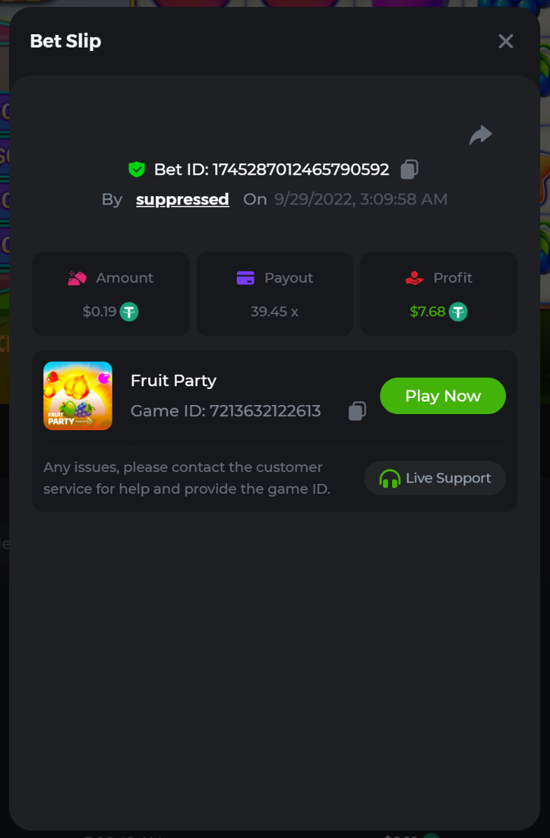 • 같은 게시물 에서 게임 ID WITH VIEW IN USD mode ENABLED를 클릭하여 승리 스크린샷을 업로드합니다 . 내기는 실제로 배치 당시의 최소 요구 사항을 충족했습니다.