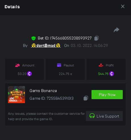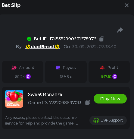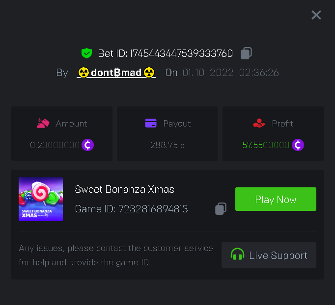 ⭐BOUNTY - 현상금 50배에 참여하세요! 이 이벤트 기간 내에 10개 게임 중 정확히 50배의 지불금을 보여주는 내기를 게시하면 상금 풀의 10%를 받을 수 있습니다! 아무도 정확히 지불금을 받지 못하면 지불금에 가장 가까운 플레이어가 이 현상금을 받게 됩니다! 최소 베팅, 최소 지불금 및 VIP에 원래 규칙이 적용됩니다.