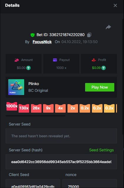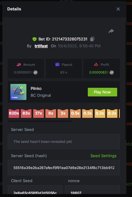 3988 Posted October 4, 2022 Share Posted October 4, 2022 Profile link https://bc.game/user/profile/1435187 Bet link https://bc.game/#/sd/10UCUYSX619PN7 Link to comment Share on other sites More sharing options...