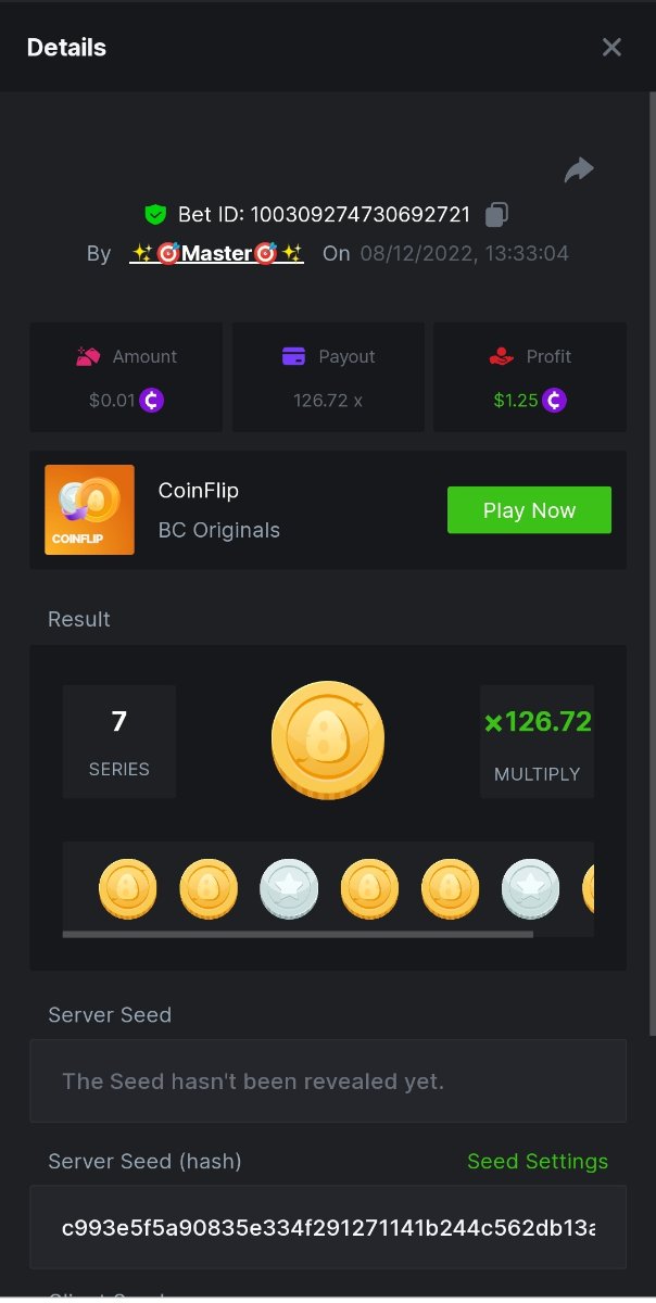 Black Tiger Posted December 8, 2022 Share Posted December 8, 2022 (edited) Read Carefully Before Start To Hunt Daily Challenges #93: COINFLIPHunt :Win the highest pay outMin Payout requirement 100xMin Level 4️Duration Starting : Now End time : 23.59 UTC Time How to Join? Make screenshot + paste your bet link + UID or Profile link Mini bet amount - 0.01$ Any coin allowedReward Prizes 1st Place....... $7 BCD2nd Place..... $5 BCD3rd Place...... $4 BCD 🎖4th Place......$3 BCD5th - 10th Place......$1 BCD 🏵 Winners will be announcing next day after Roll Point Edited December 9, 2022 by Black Tiger Link to comment Share on other sites More sharing options...
