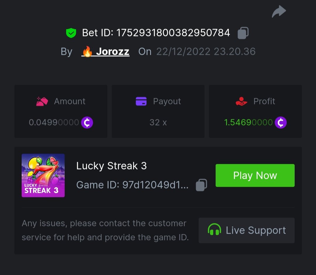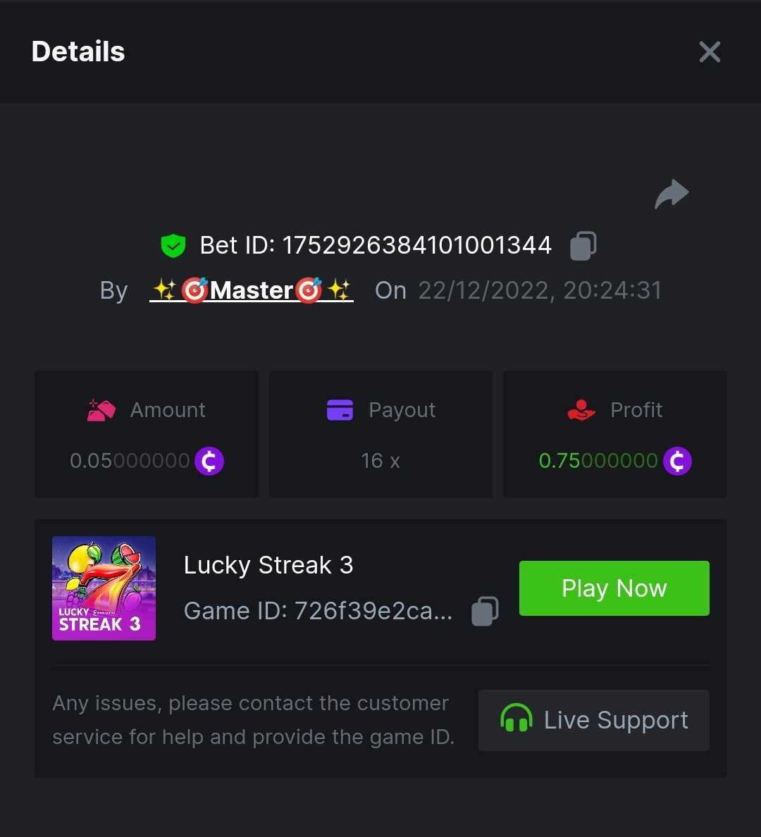 • If the player submits multiple winning entries for the same game, the entry with the highest multiplier will be valid.