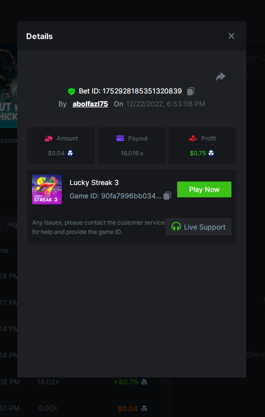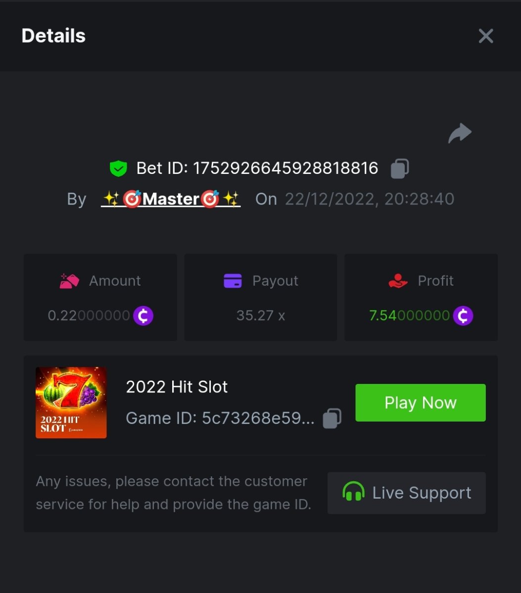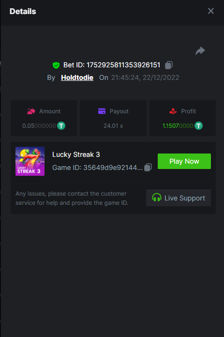 • In the same post, upload a screenshot of your win by clicking the game ID WITH VIEW IN USD mode ENABLED (accessible at the bottom of dropdown menu for your wallet up top, and Submit Reply. Done! This way, we can ensure that your bet indeed met the minimum requirement at the time of placing it: