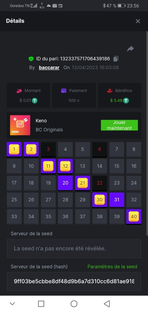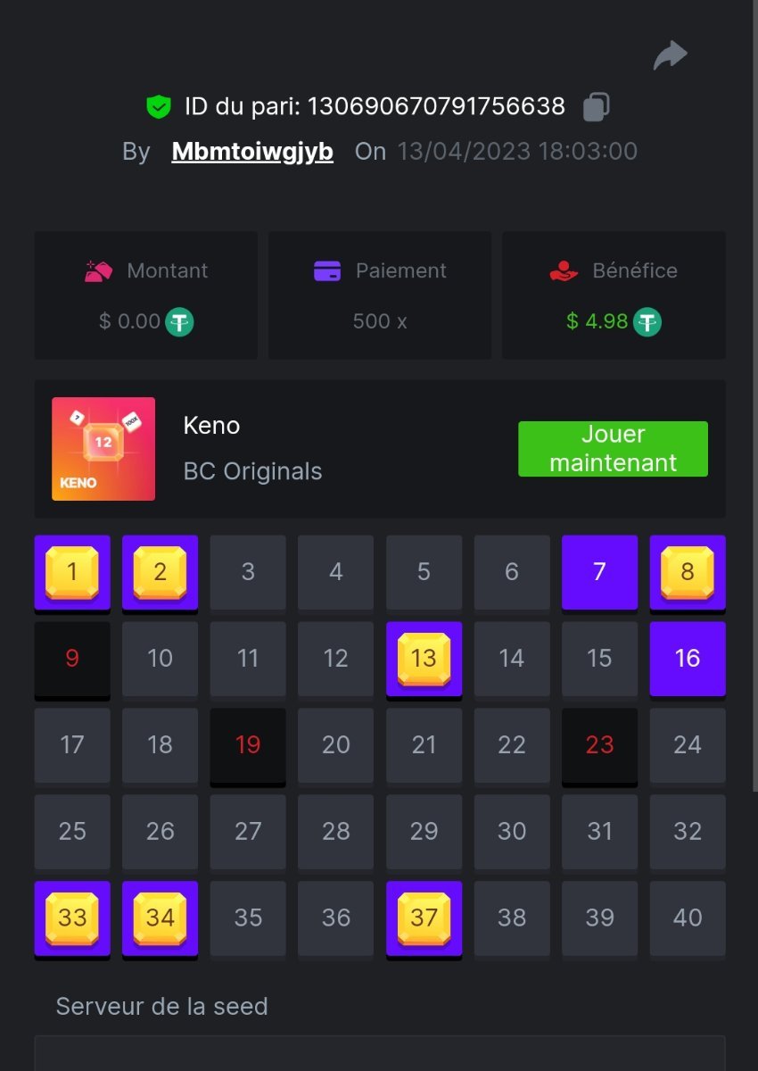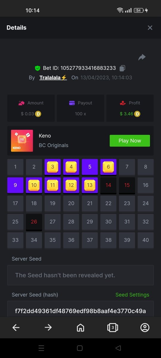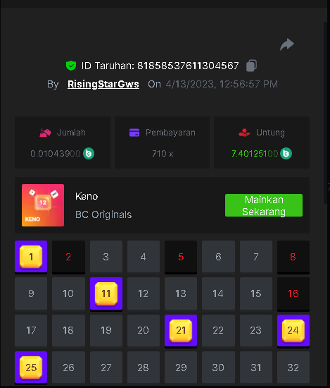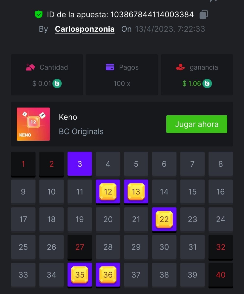 Maksypro Posted April 13, 2023 Share Posted April 13, 2023 Read Carefully Before Start To Hunt Daily Challenges #204 KENO Hunt : Win the highest multiplier Min Multiplier requirement 100x Min Level 4 ๏ธDuration Starting : Now End time : 23.59 UTC Time How to Join? Make screenshot + paste your bet link + UID or Profile link Any coin, with min bet 0.01 USD is allowed (jb/bb/bcl not allowed) Reward Prizes 1st Place........$7 BCD 2nd Place.....$5 BCD 3rd Place.....$4 BCD 4th Place.....$3 BCD 5th Place.....$2 BCD ๐ต Winners will be announcing next day after Roll Point! 1 Link to comment Share on other sites More sharing options...