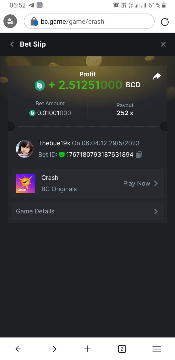 Maksypro Posted May 28, 2023 Share Posted May 28, 2023 Read Carefully Before Start To Hunt Daily Challenges #249 CRASH Hunt : Win the highest pay out Min Payout requirement 80x Min Level 4 ๏ธDuration Starting : Now End time : 23.59 UTC Time How to Join? Make screenshot + paste your bet link + UID or Profile link Any coin, with min bet 0.01 USD is allowed (jb/bb/bcl not allowed) Reward Prizes 1st Place.....$7 BCD 2nd Place.....$5 BCD 3rd Place.....$4 BCD 4th Place.....$3 BCD 5th Place.....$2 BCD ๐ต Winners will be announcing next day after Roll Point! 2 Link to comment Share on other sites More sharing options...