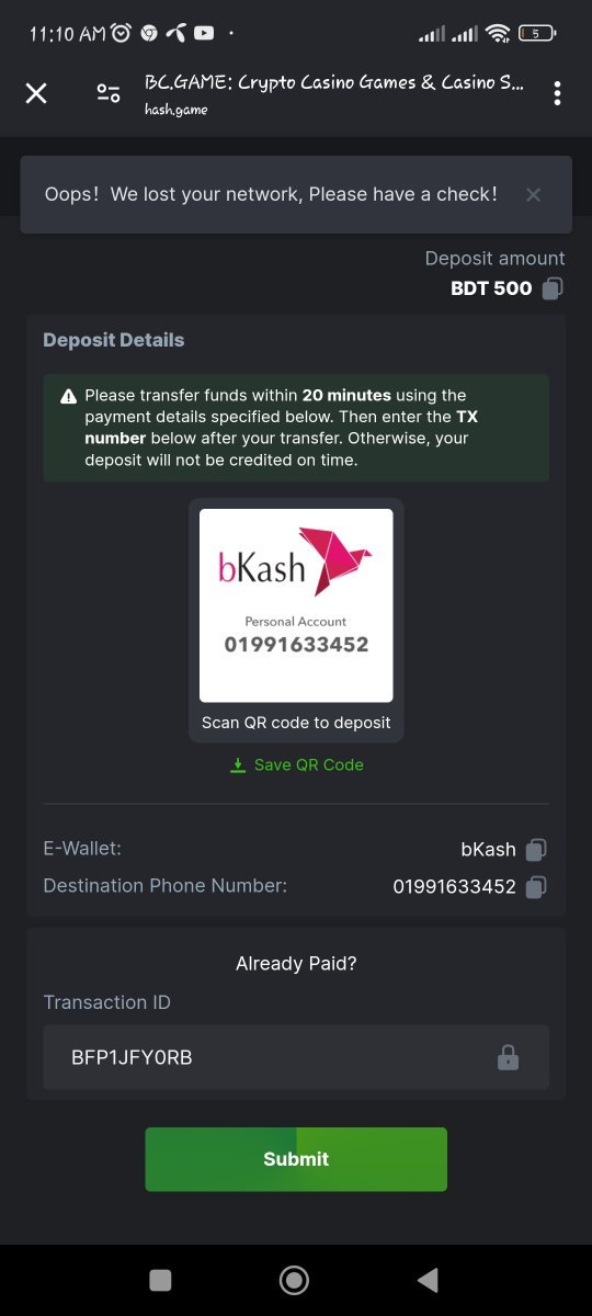 and successfully debited from my bank account not received any refund some weaks back I didn’t received withdrawal too i contacted on live support still not recieved and today my deposit not recieved look like bc game is scamming people deliberately.