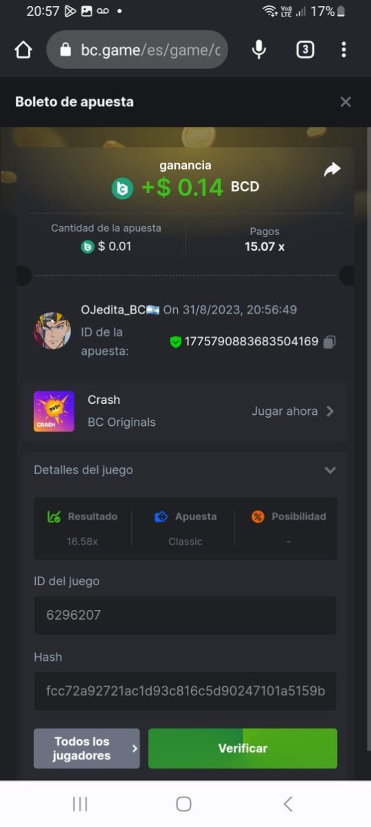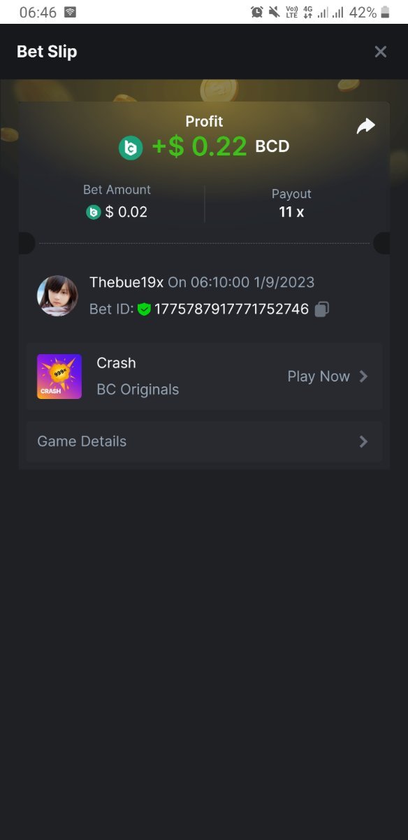 4th place . . . .  3$ BCD  - Loky8 - 15.07x  0.14