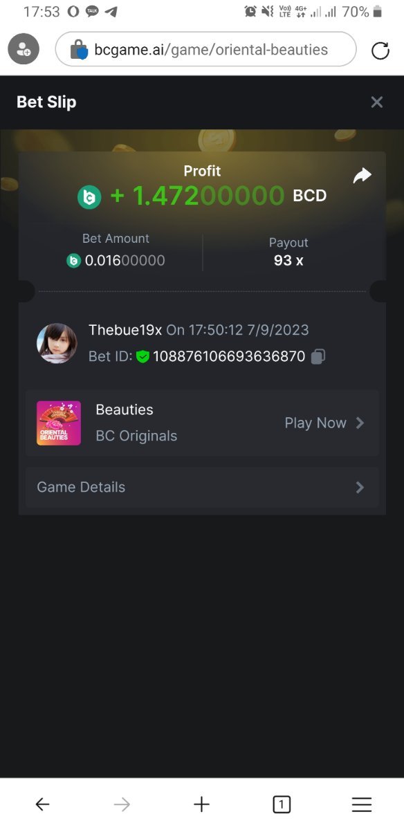 Moderator Giandreas Posted September 7, 2023 Moderator Share Posted September 7, 2023 Read Carefully Before Start To Hunt Forum Daily Challenges #351 Oriental BeautiesHunt : Oriental Beauties Win the highest pay out Min Payout : x20 Min Level 4️Duration Starting : Now End time : 23.59 UTC Time How to Join? Make screenshot + paste your bet link + UID or Profile link Any coin, with min bet 0.01 USD is allowed (jb/bb/bcl not allowed)Reward Prizes 1st Place.....$7 BCD 2nd Place.....$5 BCD 3rd Place.....$4 BCD 4th Place.....$3 BCD 5th Place.....$2 BCD 🏵 Winners will be announcing next day after Roll Point! Link to comment Share on other sites More sharing options...