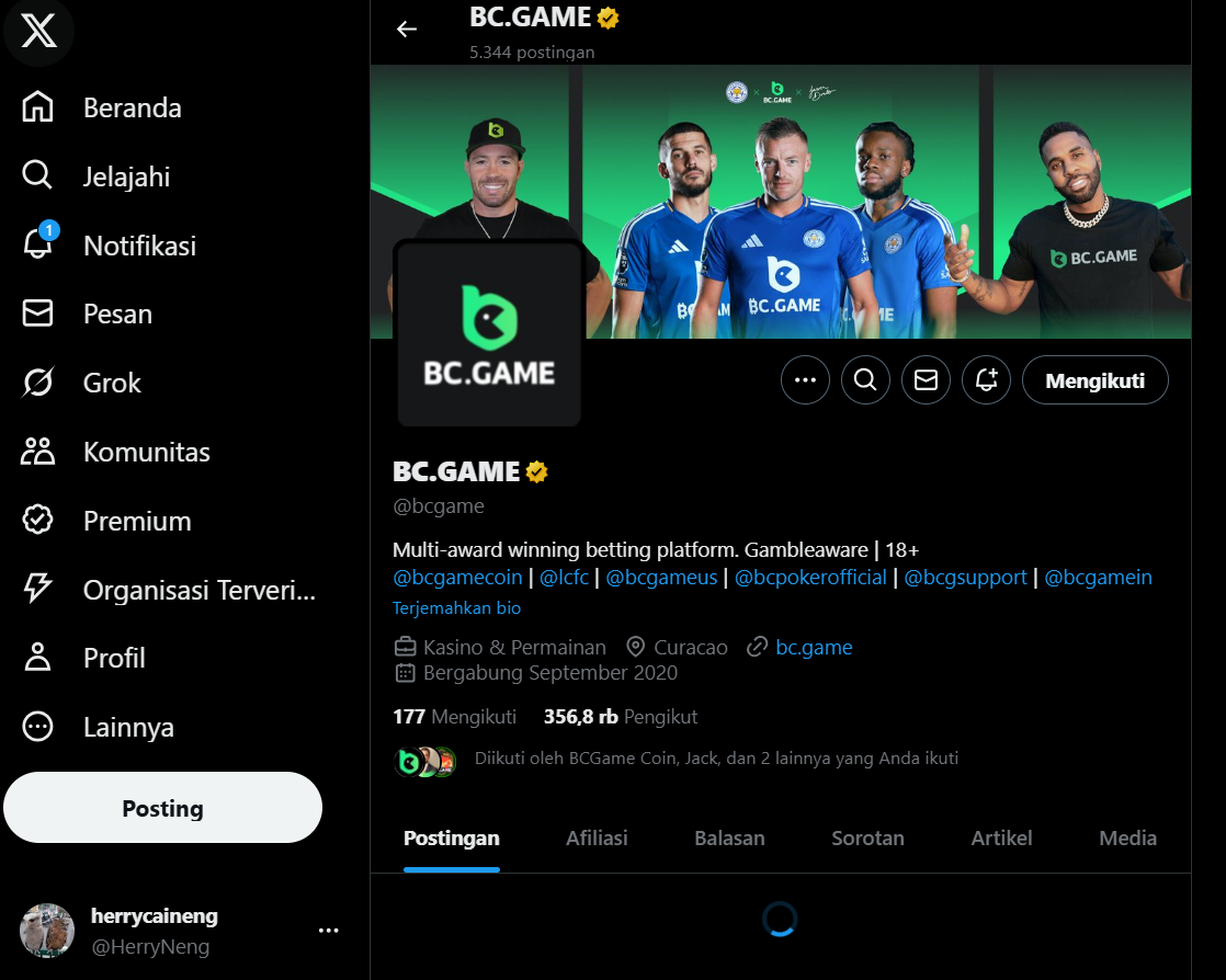 4. Follow BC.GAME Twitter Take a screenshot of the following and include your Twitter username in the forum.