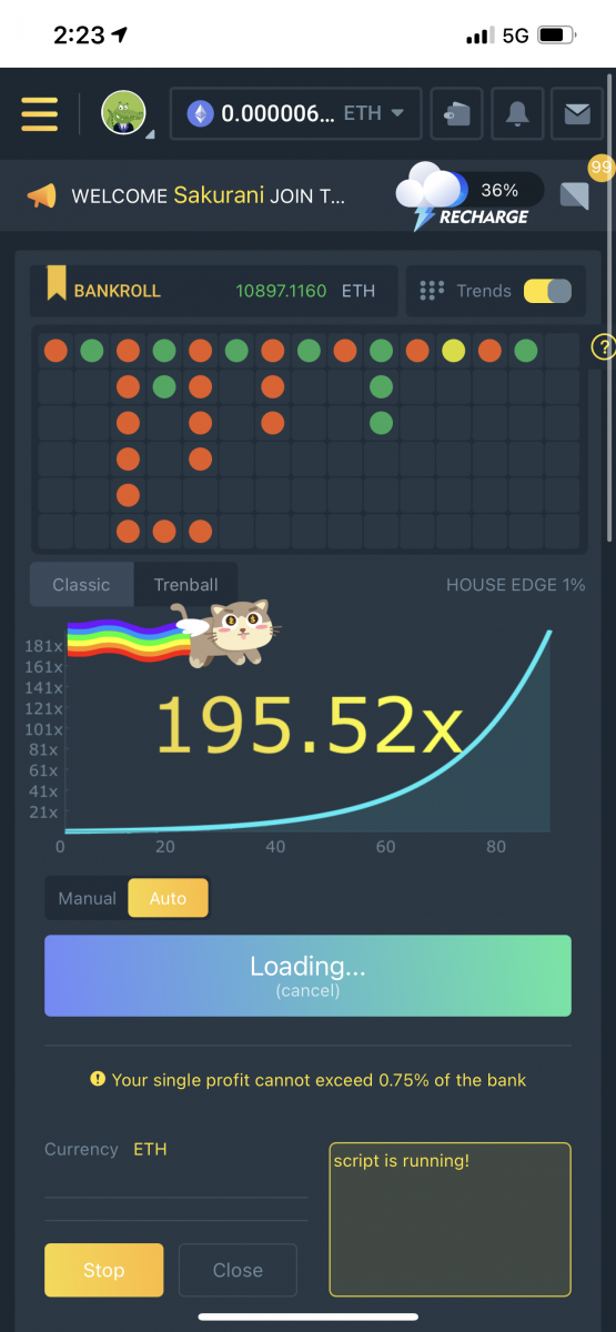 Try to play limbo in auto with USDT and I can't , it stop after 2, 3 or 4 bets.
