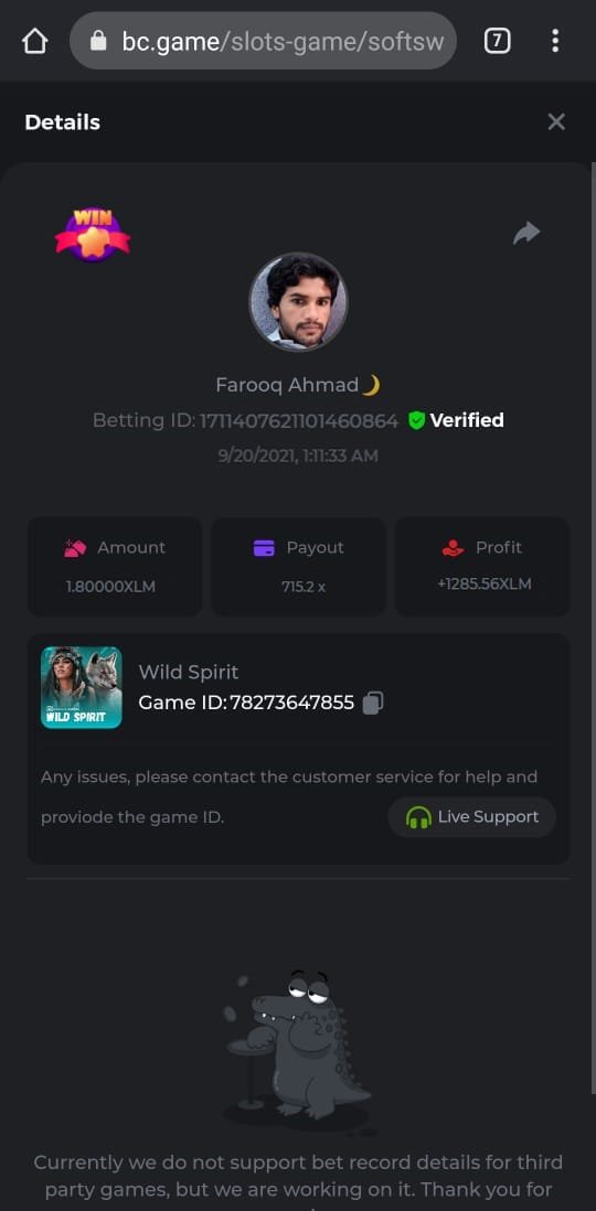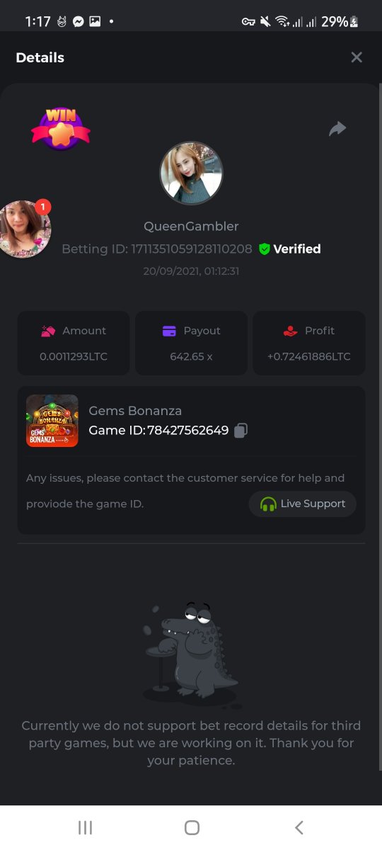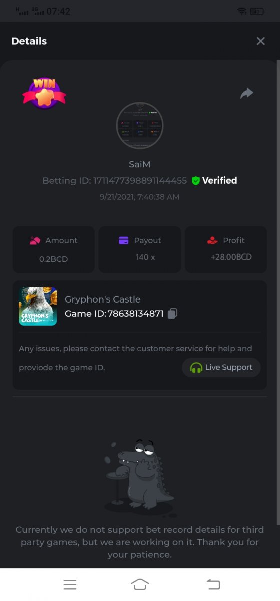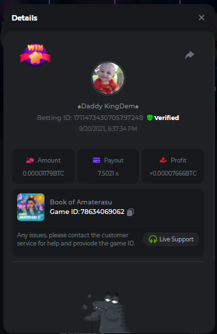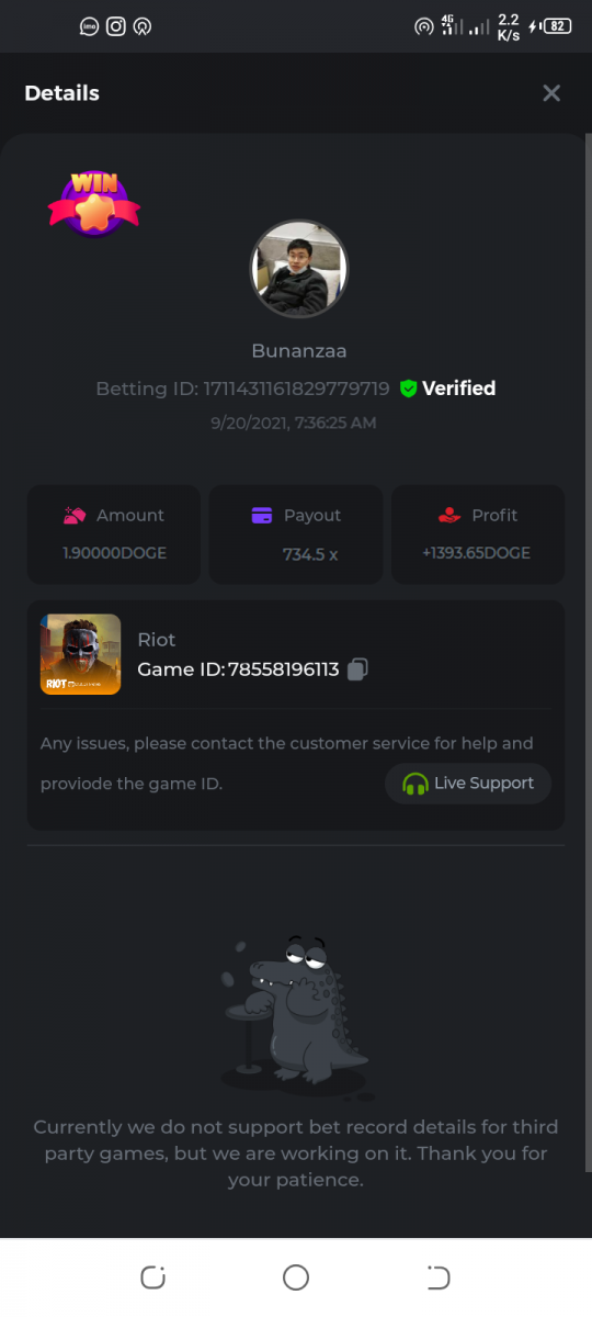 • In the same post, upload a screenshot of your win by clicking the game ID WITH VIEW IN USD mode ENABLED (accessible at the bottom of dropdown menu for your wallet up top. This way, we can ensure that your bet indeed met the minimum requirement at the time of placing it:
