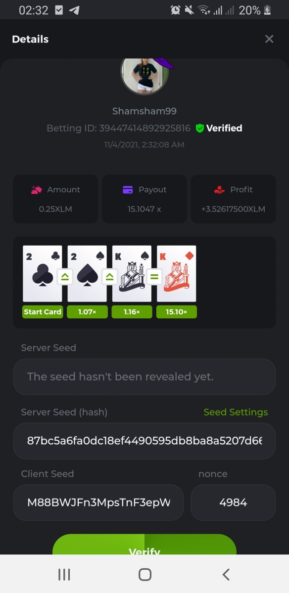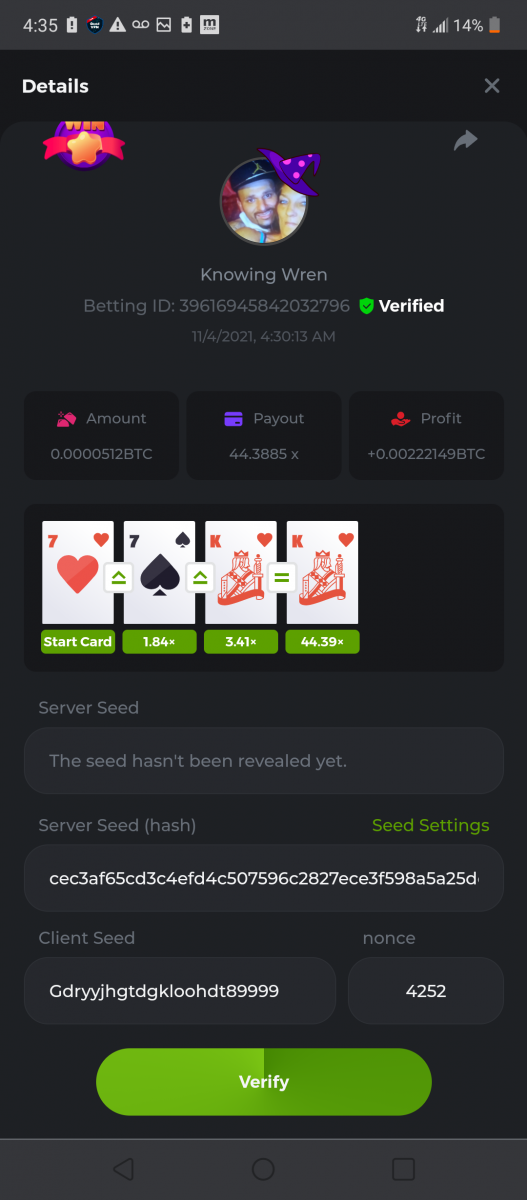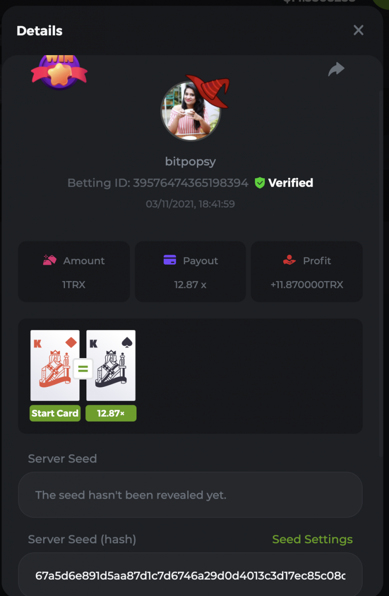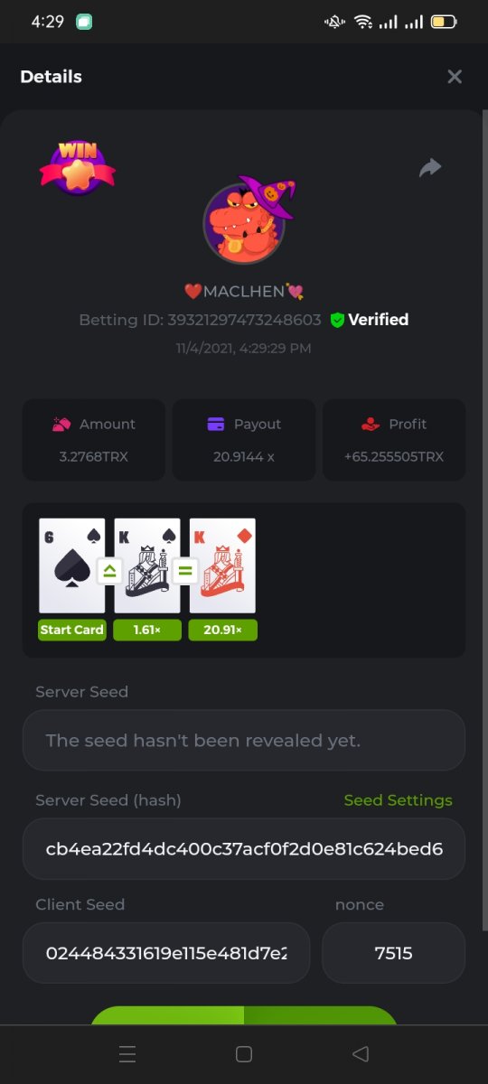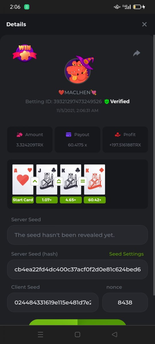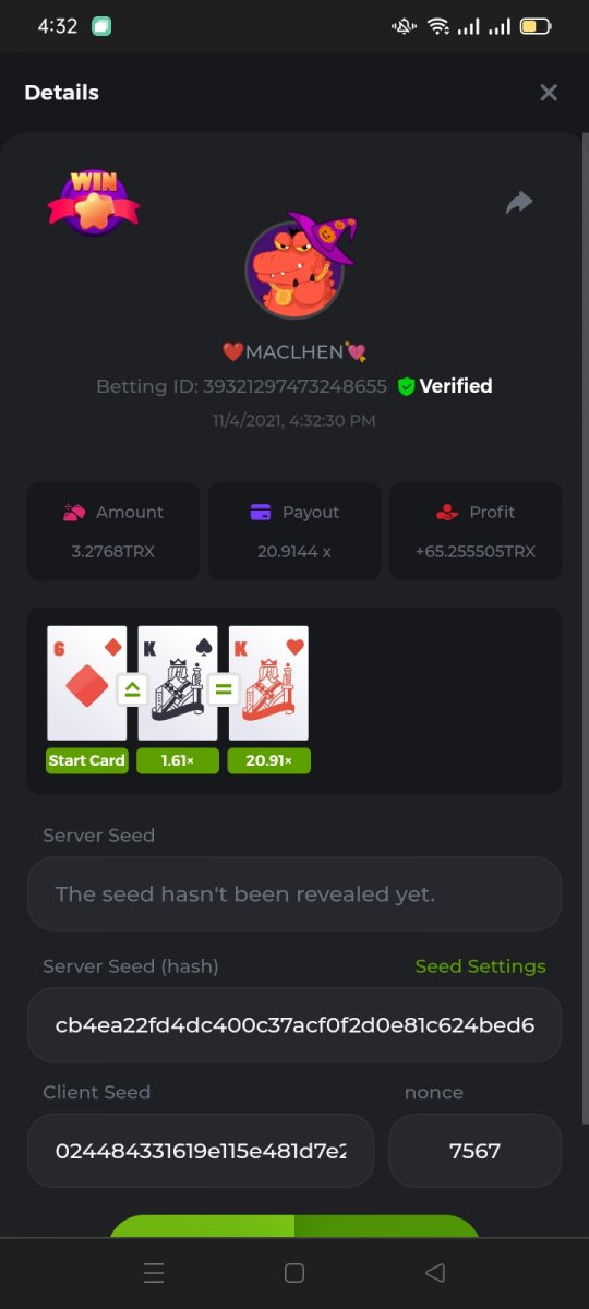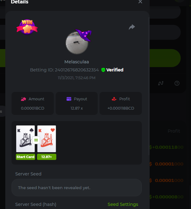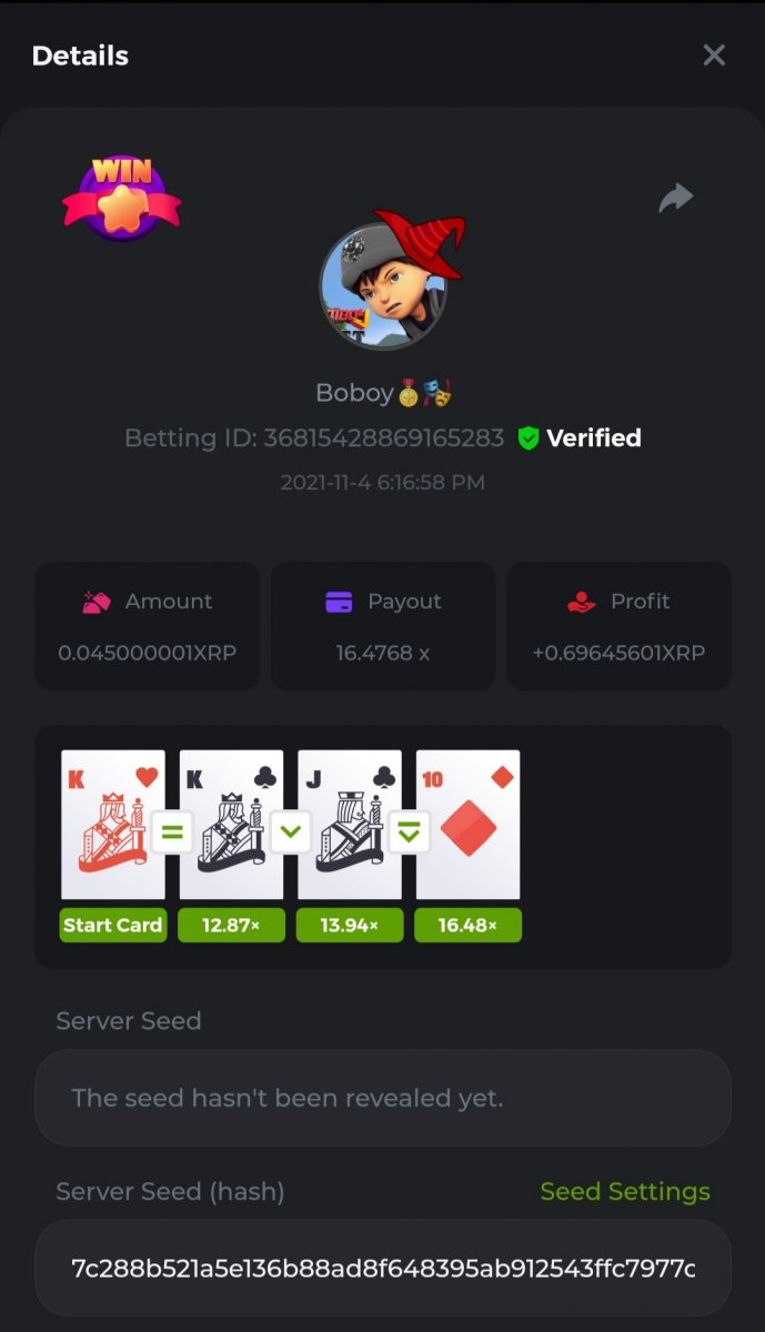 WOUNDED Posted November 3, 2021 Share Posted November 3, 2021 Small challenge #4 Every week,along to the prestige & top challenge,we have a side challenge for you We have considered HILO game for this week (We have prepared a special option Whoever earns more points this month،will receive a $ 20 prize at the end of the month) First place Second place Third place Starts: 21:00, November 3 GMT Ends: 21:00, November 6 GMT What's the Challenge? Earn 2 king cards in a row Minimum VIP Tier Must be VIP4 or higher in order to enter this challenge. Minimum Bet Size $0.05 USD equivalent (please check the individual coin amounts below) - Bets made below this amount will not count Eligible Coins All coins are eligible (excluding JB) Available Prizes 1......$20 2......$15 3......$10 To enter,copy the bet ID of the bet you'd Once you've copied it,post it as a reply to this thread like so: Betting ID:39689264501358651 In the same post,upload a screenshot of your win by clicking the game ID WITH VIEW IN USD mode ENABLED (accessible at the bottom of dropdown menu for your wallet up top.this way,we can ensure that your bet indeed met the minimum requirement at the time of placing it The one with the highest base amount wins In a tie,the one who submits the bet faster will be declared the winner Bets must be posted within 24 hours of placing bet in order to keep things fair for everyone Bets must be made during the specified time window stated above. This thread will lock automatically when the time period is over Each user is only allowed with one account Otherwise,the wrongdoer will be dealt with Failure to follow instructions will result in your submission being null and void Payouts will be made within 24 hours of challenge completion,please be patient Let's goGood luck Betting ID:39689264501358651 Link to comment Share on other sites More sharing options...