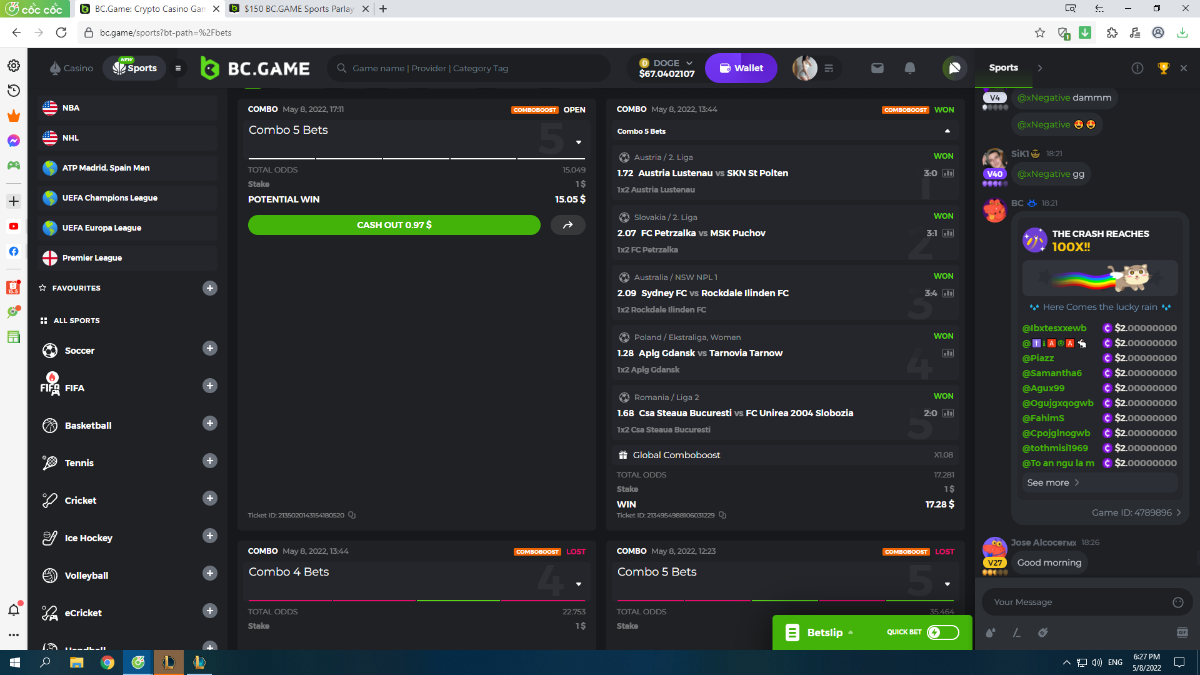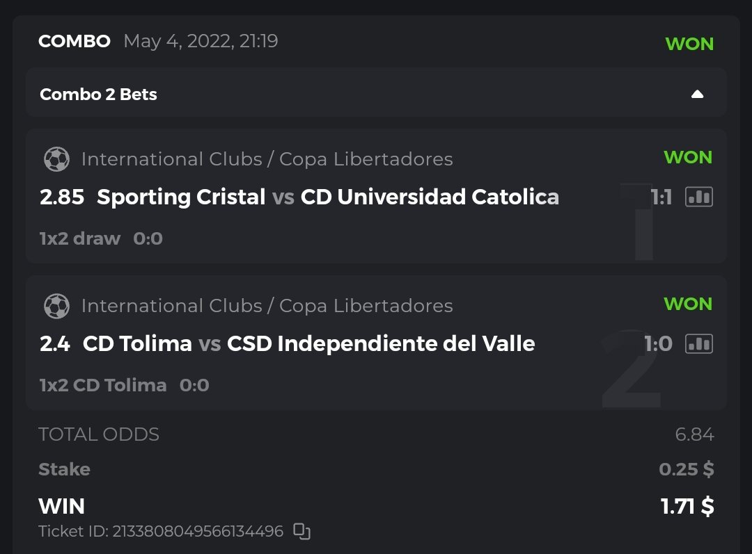 AlanMDC4 Posted May 3, 2022 Share Posted May 3, 2022 On 5/1/2022 at 8:48 PM, Edu05 said: BC.GAME SPORTS PARLAY CHALLANGE #3 Start: 1, May 13:00pm GMT Ends: 8, May 13:00 GMT Welcome to BC.GAME SPORTS PARLAY CHALLENGE with a prize pool of $150! Check below the full terms and conditions and how you can win these rewards! What is the challenge? Place a Sports Parlay/Combo Bet to qualify for the challenge. A parlay consists of two or more sports bet in a single slip with higher multiplier. Highest parlay multiplier wins the challenge. Visit https://bc.game/sports to make your parlay selections. Minimum VIP No Minimum VIP Level Minimum payout There is no minimum multiplier, however, only the top 10 winning parlay multipliers will win a prize! Minimum Bet Size $0.25 USD equivalent Eligible Coins All cryptocurrencies are eligible (excepting JB, and BCL) Available Prizes 1st Place....... $502nd Place..... $303rd Place...... $254th Place......$155th Place......$10 6th-10th.........$5 How to Enter: To participate, copy the Betslip Ticket ID of your parlay and post it as a reply to this thread as follows: Ticket ID: 2126602890796736992 Along with the screenshot of your parlay slip. Ticket ID: 2126602890796736992 If a selection results in a void or push, the bet will remain eligible as long as it remains equal to or greater than a triple bet and meets the odds requirements. Cashed out bets will not be counted. Please combine all of your hits together in a SINGLE post. Edit your existing post for additional hits, don't create a new post. Bets must be made during the specified time window stated above. This thread will lock automatically when the time period is over. One (1) entry per family. If someone finds multiple prizes, they will be disqualified from the challenge, as well as from all future challenges. Failure to comply with the instructions will result in your submission being void. By entering this challenge, you acknowledge that BC.Game has final decision rights over results and placement. All prizes will be paid out in BCD within 72 hours of completing the challenge. Does it have to be a combo bet to join, single bet is not allowed on this challenge? Any sports bet is allowed right? Link to comment Share on other sites More sharing options...