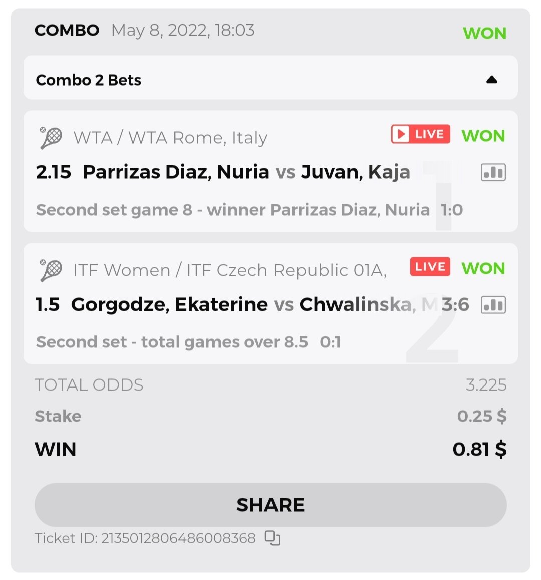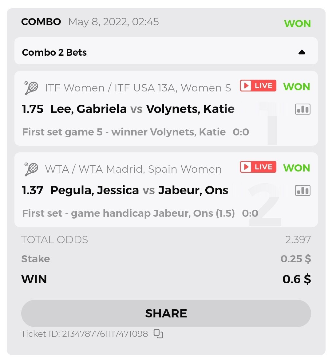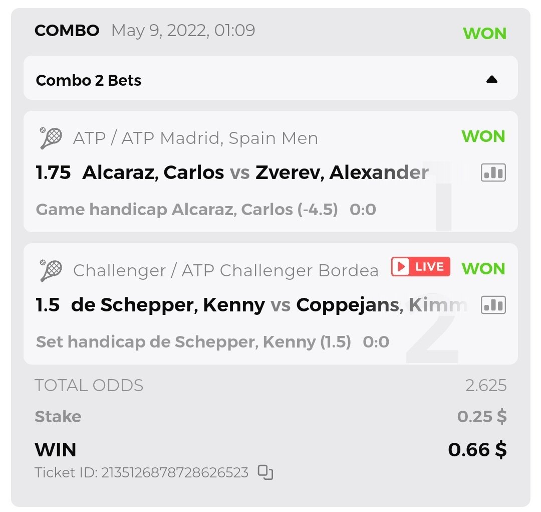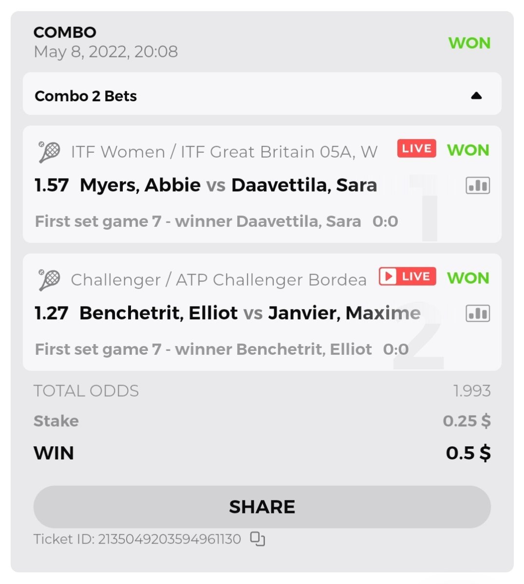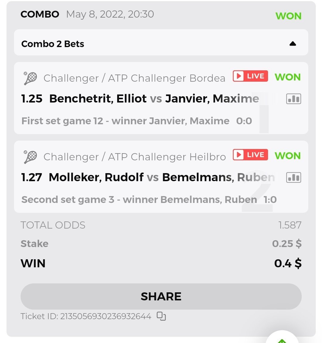 Moderator Mat Posted May 3, 2022 Author Moderator Share Posted May 3, 2022 4 hours ago, ITUS said: 2132817117563720086 2132869508724039853 2132555251000156421 2132435812397224839 2133279790403293460 2133195078519361694 2133299555356254211 2133191419404361778 This type of bet does not qualify for the event! Place a combo bet to qualify! Good luck! Link to comment Share on other sites More sharing options...