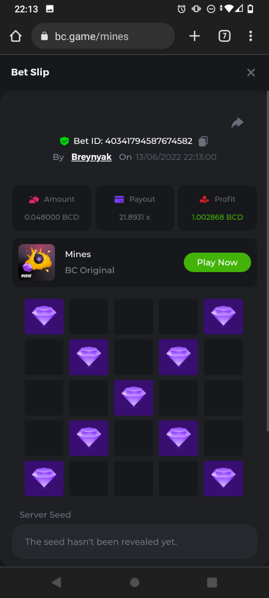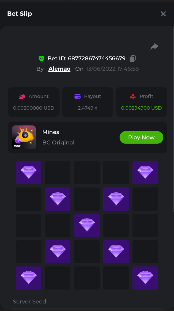 Alemao Posted June 13, 2022 Share Posted June 13, 2022 (edited) Desafio Semanal - Mines Início: 13 de Junho 18:45 -3 GMT Encerra: 20 de Junho 23:59 -3 GMT "This challenge is only for the people from the Portuguese room" Leia com atenção os termos e condições para que você fique elegível para as recompensas: Qual é o desafio? Os jogadores deverão fazer uma aposta selecionando todos os diamantes abaixo, formando um "X" (Igual ao da imagem). O jogador que conseguir o pagamento mais alto, será o vencedor. Em caso de empate, o jogador com o maior valor base de aposta será o vencedor. Se caso continue empatado, o jogador que tiver feito a APOSTA primeiro vencerá. Qualquer jogada que não esteja exatamente igual a imagem abaixo não será válida. Não selecione nenhum diamante a mais, nenhum a menos. Mas como posso obter pagamentos mais altos? Simples, você pode configurar o mines com mais bombas. Você deve configurar o mines com um mínimo de 2 bombas (Fácil) ou até o máximo de 16 bombas. Os jogadores mais corajosos podem obter pagamentos mais altos se apostando com mais bombas. Vip Mínimo: Não há vip mínimo, qualquer um pode participar. Pagamento Mínimo: O pagamento mínimo é 2.47x Mínimo de aposta: A aposta mínima é o equivalente a 0.002 USD. Moedas elegíveis: Qualquer moeda é elegível desde que cumpra o requisito mínimo de aposta citado acima. Prêmios disponíveis: 1º Lugar: 5 BCD 2º Lugar: 3 BCD 3º Lugar: 2 BCD Como entrar: Para participar, copie o link da aposta que deseja enviar. Depois de copiá-lo, cole-o como resposta a este tópico da seguinte forma: Link: https://bc.game/sd/?sd=10MLCD85OJZB4J Na mesma postagem, faça o upload de uma captura de tela de sua vitória clicando no ID do jogo COM VISUALIZAÇÃO NO modo USD ATIVADO (acessível na parte inferior do menu suspenso da sua carteira na parte superior.) Dessa forma, podemos garantir que sua aposta realmente atendeu ao requisito mínimo no momento da colocação: Por favor, combine todas as suas apostas em um ÚNICO post. Edite sua postagem caso queira colocar outra aposta, não crie uma nova postagem. Uma (1) entrada por família. Qualquer pessoa encontrada com multiconta será desqualificada deste desafio, bem como de todos os desafios futuros. As apostas devem ser feitas durante a janela de tempo especificada acima. Este tópico será bloqueado automaticamente quando o período de tempo terminar. O não cumprimento de quaisquer instruções acima resultará na nulidade do seu envio. Os pagamentos serão feitos dentro de 72 horas após a conclusão do desafio, por favor, seja paciente, prometemos que não esquecemos. Os prêmios serão pagos em BCD. Edited June 13, 2022 by Alemao Link to comment Share on other sites More sharing options...