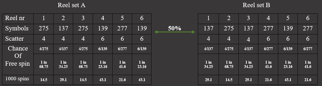 Creepybits Posted June 18, 2022 Share Posted June 18, 2022 Egyptian Adventure - Under The Hood If you have been active at BC.game for a while, the chances are that you have played their in-house slot game Egyptian Adventure. It's fun, frustrating, and at times very profitable. If you are curious, as I am, you might have wondered how the game works behind the scenes. Or maybe you want to know the odds of hitting free spins. I have made the game my excavation site to try and answer these questions, so you don't have to. Like all the other provable fair games at BC.game, this one has a server seed, client seed & nonce. The server seed is set by BC.game, while the player may change the client seed, and nonce shows how many games you have played with the current seed. The game has 6 reels with up to 7 symbols landing on each reel, which means the highest possible multiway is 7^6 = 117,649 (7 x 7 x 7 x 7 x 7 x 7 = 117,649). What happens when you make a bet? First, there are two sets of reels for the base game. Reel set A (containing six reels with up to 7 symbols per reel), and Reel set B (which also includes six reels with up to 7 symbols on each). So, the first thing that happens when you make a bet is that one of the reel sets will be chosen at random (50/50 chance). Why does it have two different sets, you may wonder. Well, the sets differ a bit, that's why. Below you can see how the two sets are configured. Note that all symbols are repeated several times on each reel, which is why there can be 275 symbols. Let's say we make a bet and end up with Reel set A. The next thing that happens is that the game will determine whether or not 1 or 2 reels should be exchanged for 1 or 2 wild reels. There is yet another reel that only activates when you get a (chance for a) wild. This is calculated by running the server seed, client seed and nonce through the provably fair algorithm. However, just because you got 1 or 2 wild reels doesn't mean you will end up with 1 or 2 wilds. The wild reel is configured similar to the base reels. There's roughly a 2.6% chance that one of the reels gets replaced by the wild reel. And even if you do get the wild reel, there's only a 4.1% chance (13/317) that the wild lands instead of one of the other symbols. To receive nine free spins, you need to land three scatter or two scatter and one wild at the first three reels. The probability of landing 3 scatters on the first 3 reels is as follows: p = 1 – (1 - p1) (1 - p2) (1 - p3) p = 1 – (1 – 0.0145) (1 – 0.0291) (1- 0.0145) p = 1 - 0.9429 p = 0.0571 For every bet you make, you have a 5.7% chance of getting nine free spins from 3 scatters on the first three reels. As always, it's statistically speaking when it comes to odds and chances. Every time you make a bet, you have the same opportunity to get free spins. The likelihood of free spins isn't higher because you have played 75 games without getting them. This is something we humans sometimes have a hard time grasping. We want to believe that if we try to hit 6 with dice as an example, the chance of getting those six increases every time we fail. That is not how it works! Every time you roll a dice, you have precisely 1/6 of a chance of hitting 6 (or any other number you wish to hit). It works the same way with games like this. Every game has a certain % chance of hitting free spins or any other possible combination of symbols. Those who are interested in the algorithm for all calculations can find all of the information at https://help.bc.game/en/article/egyptian-adventure-1x3z8rx/ Link to comment Share on other sites More sharing options...