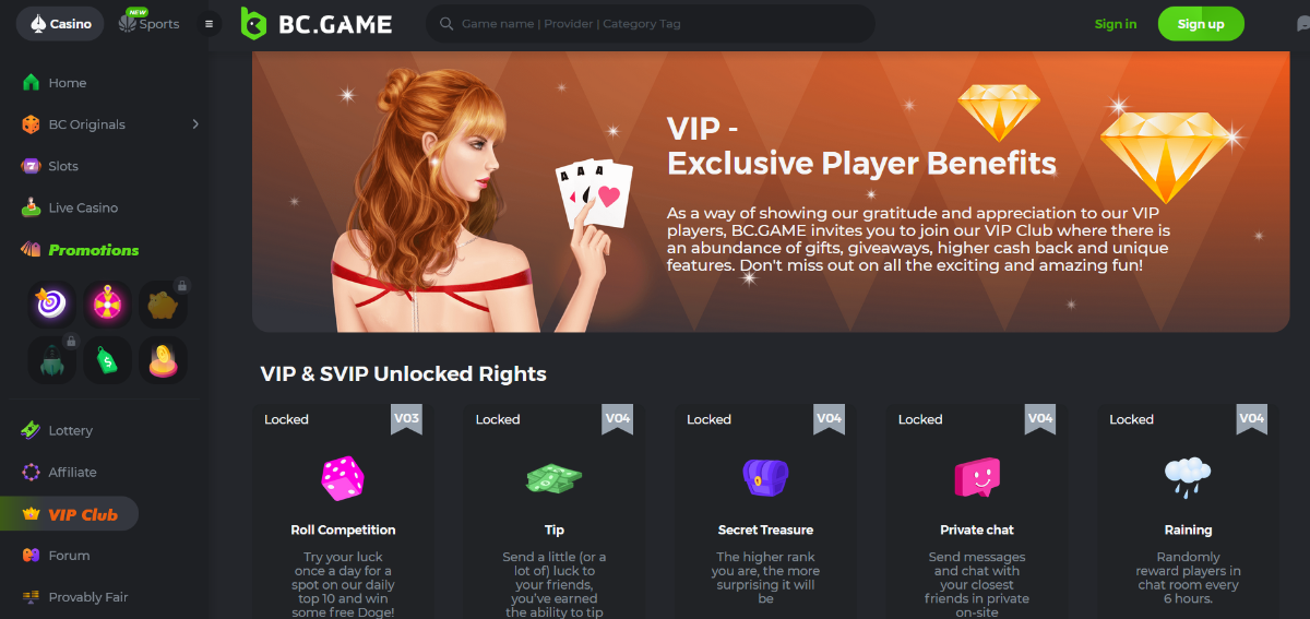 Try using a direct link to the VIP page while logged in: https://bc.game/vip-club